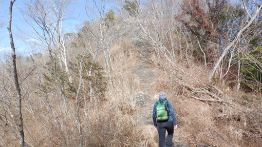![]() 山頂より西に見える吾妻の山々(白い尾根) 2020年 最初の山は茨城県に在る「鍋足山」です 青空の広がる素晴らしい登山日和となりました ![]() 赤い鳥居 大中神社 里見支所の前を通り大中神社で車から降ります 登山前に安全を祈念してからのスタートだ ![]() 大中登山口 山の神 神社から10m位の先に登山道入口が在ります 林道を進むと最初に現れたのは赤い鳥居の「山の神」でした ![]() 林道を進む! 林道終点 砂利道を登り25分くらいで終点に着きます 此処からは登山道に変わる。 ![]() 緩斜面の道 倒 木 道は緩やかな登りで汗することもありません・・・笑 ![]() 剥き出しになった根 登山道に在る道標 両脇に在る木々はアセミや灌木で芽吹いてるのが分かります 暖かいために春の先取りでしょうか! ![]() 落葉樹の森 杉 林 落葉した木々の間からは尾根も見える 登るほどに杉林に変わり又灌木林になると言う変化が楽しめた ![]() 分 岐 尾根に在るピーク 分岐に出た! 登る前に見た案内図からしてコースは数本あるのを確認してる ![]() 山頂直下 岩場の道 山頂近くになると道は岩場に変わりました 遮る物もなく広がる展望を楽しめます ![]() 眼下に見える街並み! 横たわる古木 振り向くと眼下には里見の街並みが見えた ![]() 鍋足山 山頂 白い尾根が見える 山頂に立つ松の木には鍋足山の道標が在る 素晴らしい眺めです ![]() 里山の尾根 太平洋側の眺望 里山が連なり西には白い尾根が見える 霞んでいるが太平洋方面の景色も広がっていました ![]() 休 憩 切り立つ崖 山頂は狭いが360度のパノラマを堪能できます 足元の風景も見逃すまいと目に焼き付けました・・・笑 ![]() 青空を見上げる 奇麗な雲 青空に向かって手を上げた 気持ちが良いね~ 視線を移すと秋に見る様な斑な雲が浮かんでいます ![]() 道の駅「さとみ」 遠望の鍋足山 大中神社からスタートして2時間30分程で下山です 少し車を走らせて道の駅に来ました 山間に見えるのは先ほど上った鍋足山です 青い空の下に小さな尖がりを見つけ喜ぶ・・・(笑) 動画をごらんくださいね! 戻る |