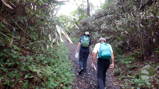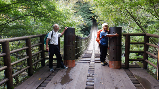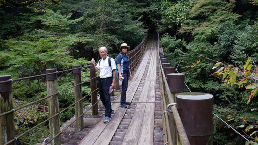 ![]() 不動滝の曝流 台風一過を狙って花貫渓谷へ来ました 木々の色付きはありませんが!大自然の中で散策を楽しみます ![]() 駐車場を出発 案内板 花貫ふるさと自然公園センターへ車を止めた 歩きだしがAM11時と予定より遅れる ![]() 探索路 コースの様子 国道と並行する遊歩道が歩きだしのコースだ ![]() 案内板 滑 滝 淵に沿って歩いていると渓流の変化を楽しむことが出来ます ![]() 可愛いキノコ コース案内板 路ばたのキノコ 可愛い姿が美味しそうだ・・・笑 ![]() 三差路案内板 汐見吊り橋 国道からハイキングコースへ進むと道標があります 右折して程なく汐見吊り橋へ着きました ![]() 汐見滝 道 標 眼下にしぶきを上げる滝が見える 上部が段々に変化してるが此処からは見えない! ![]() 周回コース 渓 流 周回コースを進むと綺麗な建物が現れた キャンプ場のトイレの様です しかしコロナの影響でキャンプ場は閉鎖されていました ![]() 土岳山登山口 山頂方面への道 今日の予定に入っていました土岳山の登山口へ着いた 山頂まで行ってくるにはチョット時間が足りない! 行ったつもりで登山口を登り10分間のピストンでした・・・笑 ![]() 林 道 吊り橋へ戻る 散策を楽しみ吊り橋まで戻ります ![]() 不思議な物体 道端の石仏 谷の林に不思議な工作物を発見 同じような作りの三角の物体が数個在ります 之は何なんでしょう? 不法投棄にしては此処まで運ぶ事が無理な大きさだ ![]() 滝案内板 乙女滝 大駐車場まで来ると乙女滝・不動滝の道標が現れた 乙女滝は眼下に見えるが下りることは出来ない様です ![]() 不動滝下口 不動滝 不動滝は探索路があり淵まで下りる事が出来ました ![]() 渓谷の風景 461号線に架かる陸橋 爆滝の流れを音で感じる事が出来る絶景です 花貫渓谷を2時間30分かけて駐車場へ戻りました ![]() 宿「やまに郷作」 前夜祭 一日目は海釣りの予定でしたが台風の影響で中止です それでは飲むしかねいべと宿へまっしぐら・・・笑 豪華な船盛りと海の幸が並ぶテーブルで話がモリモリ酒が進むのでした 動画をごらんくださいね! 戻る |