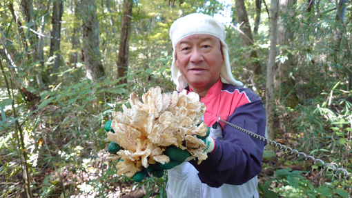![]() どでかいマイタケ キノコ狩り日和の青空が広がります マイタケの採れる秘密基地へ出かけました ![]() 林道を進みます 最初に見つけた 林道を歩き 藪へ入り 道なき道を進みます 最初に見つけたのは小ぶりでした ![]() 二か所目 流れています 二か所目は 良い感じの株だが! ん~ 残念 流れています ![]() 之はデッカイ 4か所目 三ヵ所目の巨木の根元には デッカイ 大きな マイタケが姿を現しました ![]() 之は重い 食べごろの良いキノコです 最後に見つけたのは小ぶりだが良い感じの出来でした ![]() 篭いっぱいに! 山小屋へ キノコ狩りが終わり山小屋へ 篭から出すと 良い香りのマイタケが姿を現しました 暫くぶりのマイタケ狩り 良い仕事が出来ましたね~ (笑) 動画をごらんくださいね! 戻る |