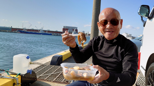![]() 港の夜景 週末の土曜日 小名浜港へ来ました 今回の目的は太刀魚を釣ることです ![]() 見つけた場所 大型漁船 何処の埠頭も釣り人がギッシリだ 今まで釣り場として来たことのない所だが 空いてる場所は此処だけです ![]() 太刀魚仕掛け 太刀魚の餌 太刀魚釣り用の仕掛!使うのが初めての物が多い! キビナゴは沖縄や大東島で船釣りで使ったことが有ります ![]() 日向で寛ぎます 気持ちが良い 糸を垂れるも日差しが強く釣れそうもないので寛ぐ ![]() 穏やかな海原 遊びに来たワンちゃん 地元の釣り人が可愛いワンちゃんを連れてきました 人懐こく・おとなしい子で撫でて上げると近寄りスリスリします ワンちゃん 可愛いですね~ ![]() ベタなぎです イワシが釣れる サビキにイワシが釣れる 青物が釣れるかも?泳がせてみました ![]() 自前の料理 美味い 野営 釣りの楽しみは のんびりできるので大好きです 自前の煮物が美味しい たまらんのだ (笑) ![]() 暑くて脱いだ 数時間後の姿? 午後の二時ころは暑くて着ぐるみを脱いだが! 数時間後は気温急降下でご覧の姿に成りました 変な奴ですね~ ![]() 日暮れの時 太刀魚釣り開始 日が落ちて いよいよ太刀魚釣り開始 電気浮きを使ってハリスの上には蛍を付けます キビナゴを針にくくり付け遠投 暫くたつと 浮きが沈んだ が 直ぐに浮いた そんなことを数回繰り返します 上げてみると餌のキビナゴが無くなっている時もある! 合わせのタイミングが解らない 夜中の11時ころまで頑張ってみましたが撃沈でした ![]() 漁船の灯り イワシの群れ 灯りに集まるイワシの群れだけが賑やかです 50匹くらい釣れました 太刀魚の初釣りあげは次回に持ち越しです ![]() 釣れたイワシ 料 理 釣れたイワシは甘辛の煮つけにしました 缶詰の様な味になってしまいましたが結構な美味さですよ~ 釣れても 釣れなくても 私は釣るのだ (笑) 動画をご覧くださいね! 戻る |