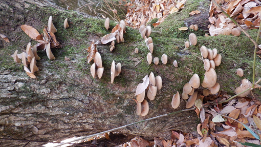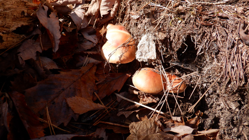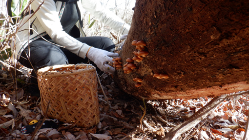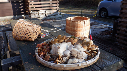 ![]() 里山の紅葉 今年最後のキノコ採りへ里山へ入る 山肌は茶色に成り紅葉の季節が終わりました ![]() 灌木林 残葉の紅葉 お目当ての灌木林へ行き探索開始 彩鮮やかなモミジの木も残葉だけに成っています ![]() 大きな背負篭 キノコ探し 大きな籠を背負いキノコ探しだ 山は乾燥して落ち葉は歩くたびにカサカサと鳴ります ![]() クリタケ ナメコ 最初に顔を出したのはクリタケ 続いてナメコが並んでいる倒木を見つけました ![]() 彷徨い歩く 乾燥したキノコ 例年は今時期山へ入るとシメジが列をなし ムキタケが枯れ木に花が咲いた様にビッシリ付いているが! 無い・・・笑 ![]() 大岩が目印 山歩きは暑い 林の変わり目で折り返し 尾根を進み大岩が現れたら下って行くと車のデポ地点です ![]() 場所移動 シメジ 最初の目的地を離れて場所を移動 走る道から眺めているのは雪化粧の飯豊山だ ![]() ムキタケ 籔を歩く 此方の山へ入るとシメジやムキタケが並んで出ています 藪が濃く野バラのツルが引っ掛かり歩きにくい山肌だ ![]() 藪を脱出 霞がかかる山々 山を歩いた時間は3時間強 思ったようには採ることが出来なかったが! 楽しいキノコ狩りでした ![]() 欄干のサル 今日の収穫 帰りに山小屋へ回りキノコを選別して終了です シメジ・ナメコ・クリタケ・ムキタケ 鍋でよし 炒めて良し 汁や酒蒸しも最高だ 山の恵みをありがとうございました 動画をごらんくださいね! 戻る |