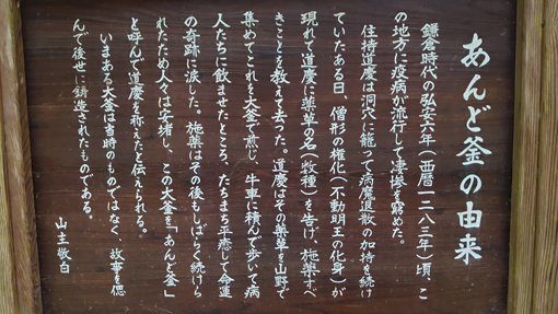 ![]() 奥の院(不動滝) 「中野の不動さま」と呼ばれ 日本三不動の一つである中野不動尊に 恵明道人が山神のお告げによって不道明王を祀り 不滅の聖火を灯したのが始まりと言われています ![]() 駐車場に着いた 入 口 週末を利用して中野不動尊へ来ました 厄除けとご利益を願いパワースポットでもある注目のお寺さんへ ![]() 大日堂 案内図 赤い欄干を渡り参道を進みます ![]() 寂光門 毘沙門天 眼下に寂光門を眺め納札堂の前を通り奥へと進みます ![]() 奥の院 祈願堂 写真が前後したが祈願堂が最初に参拝した所だ 奥の院では、お願い事を念じます ![]() 不動滝 滝つぼ 水の音が大きくなると豪快な流れの不動滝が現れました ここは滝行が行われる所です ![]() 参 拝 拝 殿 思う気持ちを ありのままにお祈りしました 少し欲張りすぎたかも(苦笑) ![]() 洞窟めぐり 奥の院と不動滝 いよいよ「36童子」洞窟巡り 初めてお参りをさせて頂く所で気持ちが逸ります 色んな表情の地蔵さん(動画)と会う事が出来て豊かな心に成りました ![]() 由来 案内版 あんど釜 あんど釜の由来を読むと先人の偉大さを再認識されます ![]() 参 道 宝篋印塔 五輪塔 供養塔や墓塔として建てられた ![]() 石 像 本堂の階段 石像が並んだところを通り木の階段を登ると本堂に出ます 時間をかけて不動尊境内を一周しました あらためて中野不動尊の偉大な歴史を知ることが出来ました 動画をごらんくださいね! 戻る |