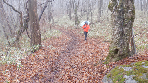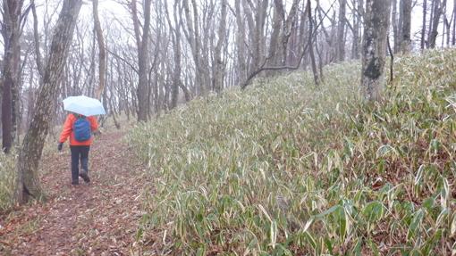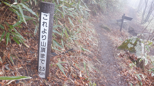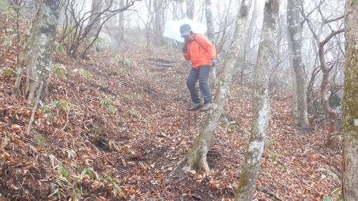 ![]() 笹生い茂る登山道 富士山の見える北限の山 日山へ来ました 天気予報は雨です ![]() 登山口への道標 田沢登山口 459号線に在る道標を見つけて右折し しばらく走ると登山口へ着いた ![]() 登山口にて! 放牧場 道路の脇に車を止めてスタートです 放牧場と思われる山には 鉄柵が回されてるが急斜面で動物が過ごせるのか心配だ・・・笑 ![]() 最初に現れた道標 水速女大神 歩き始めて程なく道標が現れた 鳴雷神と記されてる立派な碑が祀られています ![]() 休 憩 直登コース 登山道には休憩場所が作られ道も整備されています 一年を通して多くの登山者が訪れて居るのでしょうね~ ![]() 東小屋 雑木林の道 次に東小屋が見える場所に着いた 写真で見るより斜度が在る登山道で結構しぼられます ![]() 雪道へ変わる 山頂へ 山頂近くになると雪道に変わりました ![]() 間もなく山頂 苔の滴 空に漂う泣き雲が我慢できず大粒の涙を流す 木々に冷たい雨ふりかかり 苔から垂れる雨水の美しい光景に足止めされた ![]() 大 岩 巨大な岩 山頂直下に大岩が現れた少し雨宿り 其処から少し上ったところに巨大な岩が重なる場所も在りました ![]() 雪道が山頂へ続く 山頂に到着 雪を踏みしめて最後の登り 山頂へ到着です ![]() 広い山頂 素晴らしい展望台 山頂は広く見事な展望台がありました ガスがかかり見渡す限り真っ白です 富士山の見える北限の山・・・今日は何も見えませんでした・・・笑 ![]() 日山神社の大鳥居 山頂神社 山頂広場に在る大鳥居を潜り神社へ 此処が日山のテッペンです ![]() 休 憩 下山前 神社でお参りを済ませて雨宿りです お陰様で寒さをしのぎ25分の休憩を楽しむことが出来ました ![]() 山頂に在る道標 急斜面を下りる 雨の降る山で登山者と会うこともなく下山です 登りは直登でしたが下山コースは緩斜面の道を選んだ ![]() 胎内くぐり岩 落ち葉の在る道 下山路に在る胎内くぐり岩へ潜ります デブは大変だ~と聞こえる方を見ると中で蠢く姿が在りました・・・笑 ![]() 笹に覆われた山腹 ガスが係る 下るほどに笹に覆われた綺麗な山肌に変わります ![]() 分 岐 道 標 分岐を過ぎるとガスの中から眼下の景色がぼんやりと見える ![]() 東屋の休み場 階段の道 電気柵が張り廻られてる山肌は草原だが急斜面です 此処に家畜が放されるのかな?ちょっと気に成る場所でした ![]() 茂原登山口 パノラマ高原 悪天候の登山でしたが 雨の時にしか味わう事が出来ない事がいっぱいありました 自然の素晴らしさに感謝です 動画をご覧くださいね! 戻る |