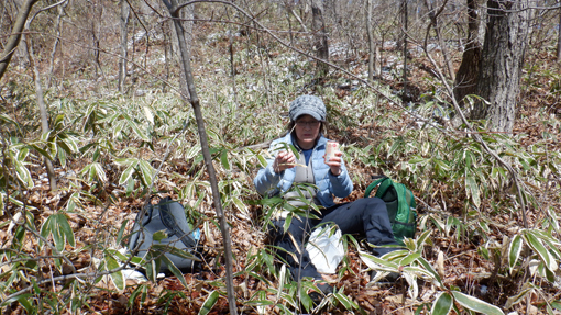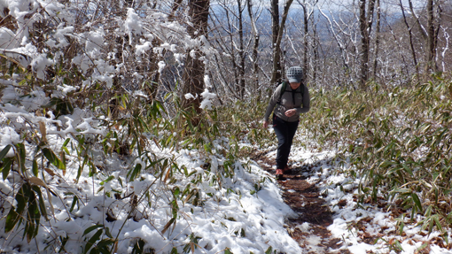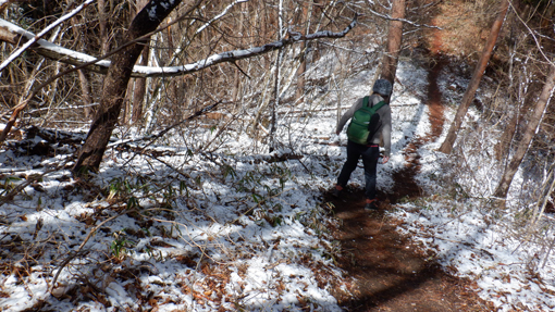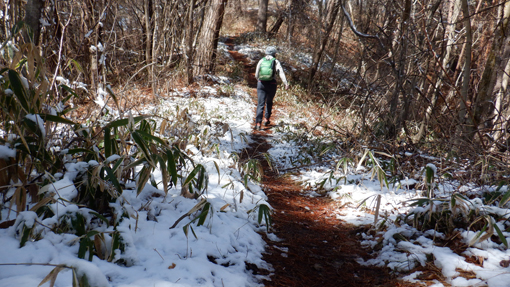 ![]() 山頂より(会津の山々) 里山歩きを楽しんでいるが最近になく良い天気です 雨や曇り雪などっで!青空を拝めなかったために 今日は朝からテンションが上がりっぱなした ![]() 足尾神社登山口 鳥居の階段 宇津峰で一番長いコースは何処か? たぶん此処だろうと足尾神社の在る登山口に着いたのは既に11時でした ![]() 階段を登ると! 雪被る山腹 神社の階段を登り切ると竹やぶの混じる雑木林です 昨夜降った雪が被りうっすらと雪化粧でした ![]() コブに出来たキノコ 松葉の寝床(苔) 山野草は未だ芽を出していない 泳ぐ目に映し出されたのは渇いたキノコと苔です ![]() シュンラン 雪被る道 登山道に青い葉を見つけ! 枯葉を退かすと今にも咲きそうなシュンランの花芽を見つけた ![]() 巨木出現 宇宙人(雪ダルマ) 二次林の様な山容の中に巨木が現れた そして隣の雪溜まりには宇宙人の様なダルマが・・・笑 ![]() 足尾神社 尖がり石が並んでた 足尾神社に着いた 登山口から此処までは斜度があり山歩きを楽しめます ![]() 一休み! 道 標 最初のチョイ休み ![]() 展望台到着 笹斜面 展望台に着くと南東方面が開けていて 山並みを見ることが出来ます ![]() 元気に歩く 余裕の山歩き! 久しぶりの登山日和に上がったテンションが全開だ 笑いが絶えない一日となります ![]() 雪帽子 雪景色の山肌 尾根歩きになると木々の雪も付いたままで 雪化粧に青空が映える。 ![]() 山頂直下 尾 根 間もなく山頂です 尾根道も広くなり目指す先には大きな石柱が立っていた ![]() 山 頂 蓬田岳方面 山頂に着いたのはPM12:20分です 広場には多くの登山者が休んでる人気があるんですね~ ![]() 須賀川方面 会津の山々 山頂は開けていて南東方面の展望が良好です 里山や福島空港・会津の山々を見ることが出来ました ![]() 福島空港 眼下の展望 ガスの係っていないパノラマ最高です 青空に誘われて登って来た親子連れや登山者の寛ぐ姿が在りました ![]() 山頂の祠 山頂鳥居 山頂には東屋をはじめ祠が祀られていて石の鳥居も在ります 山シーズンは登山者でにぎわうのでしょうね~ ![]() 休 憩 団体さんが行く 風がある広場から少し下り日向で休憩です 休んでいると大きな話し声が聞こえ団体の登山者が下って行った ご年配の元気な姿を見送ります ![]() 下 山 楽しい山歩き! 約二時間強の里山歩き この快感が病みつきになりそうな楽しい山歩きでした・・・笑 動画をごらんくださいね! 戻る |