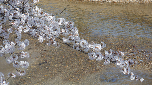 真っ青な空に桜の花が泳いでいます