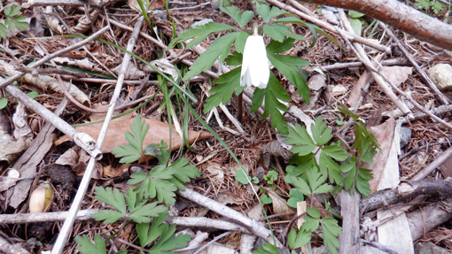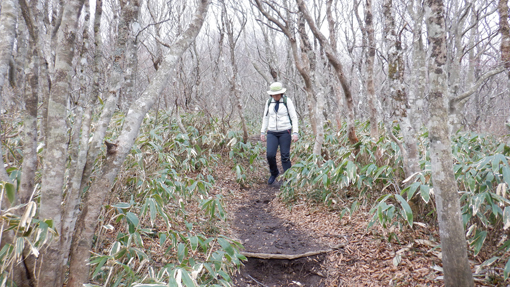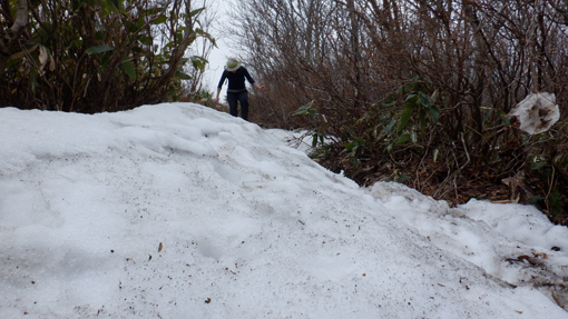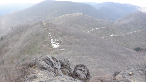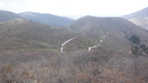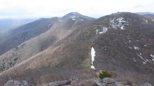 ![]() 額取山(安積山)山頂より 予報に反して素晴らしい山歩きとなりました 冷たい風が頬を撫でる 歩きだしは曇り空でしたが! ![]() 峠登山口 ガレバの登り 郡山市から車で30分程で峠の駐車場に着いた すでに先行者の車があります ![]() 雨神 風神 様 三森方面 ガレバを登り最初のピークに着いた 遮る物が無く展望を楽しむ! ![]() 残雪が多い 登山路に在る大岩 少し下ると残雪が現れた 山肌にも白い筋が数本見られます 此処の登山道は危険な箇所もなく大きな岩場は一か所だけです ![]() 登山道を振り返る 灌木林 登って来た道を振り返る 峠の駐車場は左奥に小さくなって見えます コルに在る灌木林 尾根歩きで此処までの背丈がある木は此処だけかな? 楢やブナなど根元は熊笹に覆われています ![]() 分厚い雨雲 熊笹の道 登り始めて1時間くらいは分厚い雲に覆われていました 何時雨が降るかなと心配していましたが! ![]() 数個目の尖がり 磐梯山 だんだんと雲が流れて青空が見えます 雲の傘をかぶっていました磐梯山も姿を現しました ![]() 大展望の尾根歩き 間もなく大将旗山 日差しも出てきて暑く成ってきました ![]() 大将旗山 山頂 眼下の街並み 大将旗山 山頂 眼下には郡山市街が一望できます ![]() 尾根の雪だまり 額取山が見える 休むことなく額取山を目指す 残雪に足を取られながら冷てい等と騒ぎながら進みました ![]() 眼下の里山 山頂近し 飽きない 楽しい 展望よし 郡山近郊で此処まで贅沢に楽しめる山は此処だけです (笑) ![]() 変化する磐梯山 大将旗山(中央) 磐梯山の風景がどんどん変わるのが解ります 強風に曝されてる尾根道には背丈の在る木は殆どありません! ![]() 山頂が見える 尾根を振り返る しかしコルや東斜面の山腹を歩く時には 背伸びしてる木が視界を邪魔します ![]() 尾根に在る水場 山頂の岩場 水場を過ぎると間もなく山頂です ![]() アップダウンの登山道 山頂到着 歩き始めて2時間で額取山 山頂に着に着いた ![]() 額取山(安積山) 休 憩 心配された天候も好転してご覧の様な青空が広がっています 風もなく 穏やかな中で休憩を楽しみました ![]() 西に見える磐梯山 之から戻る長い尾根歩き 山頂から見る磐梯山の奥には 写真では確認できないが真っ白な飯豊山が見えます ![]() 此処で磐梯山とお別れです 無木立の尾根 今日の山歩きで会った登山者は7名でした 皆さん 元気でしたよ~ (笑) ![]() キクザキイチゲ まだ蕾が多い 山にはフキノトウくらいしか見ることが出来ませんでしたが 下りてきてから林道沿いにキクザキイチゲの白い花を見つけました 今日も一日素晴らしい山歩きが出来ました 動画をごらんくださいね! 戻る |