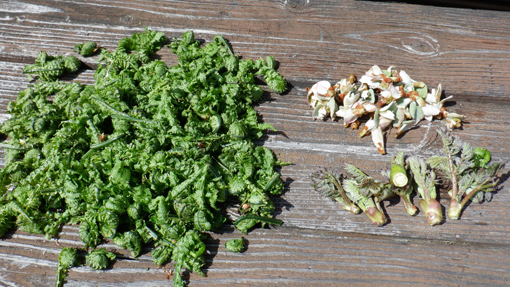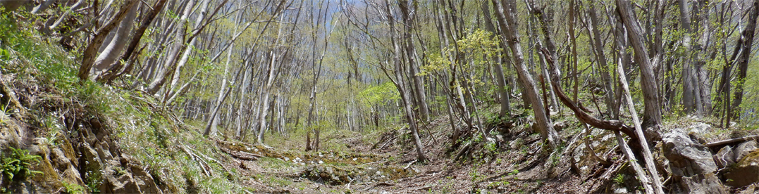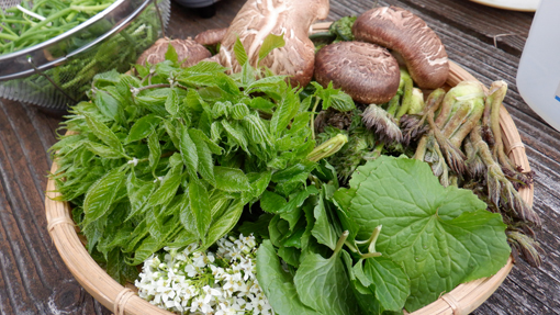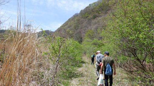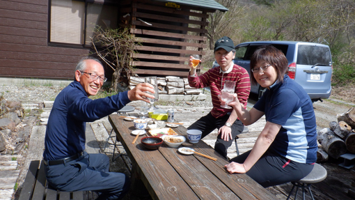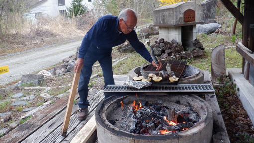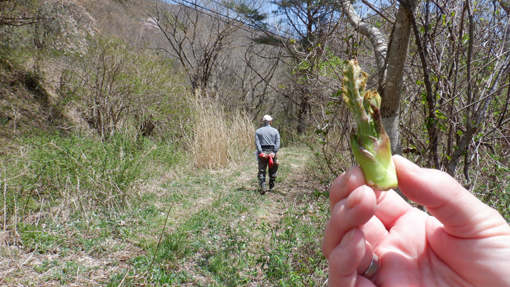 ![]() 磐梯山麓 磐梯山麓の山小屋から出発して深山へ散策です 真っ青な空から新緑の山々へ降り注ぐ太陽 ![]() 櫛ヶ峰 山小屋を出発 櫛ヶ峰は白い筋を残し冬景色を演出しています ![]() 山菜採り部隊 林道が川に! 今日の予定行動は6km(2時間30分)です 林道に取りつくと沢の流れが変わり川の様になっていました ![]() タラノ芽 2時間30分の歩き 少し季節が早いのかタラノメは小さい! ![]() 山菜を採る 点々と彩る山桜 少し山へ入るとコゴミが顔を出します 山を彩るピンクは山桜だ ![]() スミレ タラの新芽 山肌にスミレが咲いて タラノメも少しふくらみが大きくなっています ![]() 一輪草 ヒトリシズカ 日向に咲いているのは一輪草とヒトリシズカ ![]() 崖っ淵 落石のガレバ 崖っ淵の山菜を採る姿!あぶねいな~ ![]() 林道が! 古木のオブジェ 昔は車も通る事が出来た林道は崖崩れで埋まっていました ![]() 山菜日和 ブドウの芽 燦々と降り注ぐ太陽の日差しで汗が! それでも山歩きを楽しむ仲間の足取りは軽かった・・・笑 ![]() チョット休憩 長瀬川 大岩に腰を下ろして休憩 長瀬川の流れに泡立つ水面が心地いい音色を奏でています ![]() 沢水で涼を! ワラビの新芽 沢へ下りて涼をとるが 雪解け水とは違い冷たいとは感じない! ![]() 此処は林道 場所を変えて 完全に川と化した林道 コシアブラが無かったので場所を変えて山菜を採ります ![]() コシアブラ いっぱい採りました 標高を下げたためにコシアブラを採ることが出来ました ![]() コゴミ・ブドウの芽・タラノメ キョウロギ・山ワサビ 今日の収穫です ![]() コシアブラ・椎茸・タラノメ イワナ 沢ではイワナも捕まえた・・・笑 ![]() キョウロギの酢味噌 タラノメ天ぷら コゴミ コシアブラご飯 ![]() 楽しみな時間到来 炭火焼(イワナ・ニジマス・タケノコ) 山菜を採って美味しく頂くが今回のテーマです 待ちに待った楽しい時間が刻々と過ぎるのでした・・・笑 動画をごらんくださいね! 戻る |