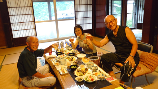 ![]() 民宿「おっこの木」 連休を利用して新潟散歩でした 初日は移動とお目当てのお店「アホうどり」へ行きます ![]() 三条市「合禄」 初日の宿 三条市の老舗旅館「合六」に泊まりました 町屋造りの静かなお宿 で今回二度目のお泊りです 気立ての良い女将さんが迎えてくれました 中庭には鯉が泳ぎ廊下には時代の置物が飾られています ![]() 焼き鳥「アホうどり」 美味いもん! Su-さんが見つけたお気に入りのお店で! 優しいスタッフが忙し気に動き活気があります ![]() おまかせコース ご機嫌です 美味しい料理が次々と出てきて飲み放題 飲み物も豊富で日本酒・ビール・カクテル・焼酎など等 お好みの物が並び楽しいお店です 「御一人さん¥3000」・・・財布にも優しいお店でした ![]() 二日目「鋸山」 花立峠「道標」 二日目は長岡市の最高峰「鋸山登山」でした 記録は別報告です・・・笑 ![]() 二日目の宿 宿のスタッフと一緒 山を下りて向かった先はお気に入りの宿「おっこの木」です 優しいスタッフが迎えてくれました ![]() 古民家の内装(梁と引戸) 欄 間(透かし彫り) 古民家は全てが文化財保存級で素晴らしい作りです 村の様子や建物の由来などを聞くことが出来ました ![]() 大広間で宴会 帰る前に! お米に始まり料理は満足の玉手箱です とにかく何を食べても美味しく広間が醸し出す雰囲気が素晴らしい 又お邪魔させて頂きますね~ ![]() 高龍神社 階段入口 宿を出て向かった先は高龍神社です 商売繁盛の神様として県内外から参拝者が絶えない神社と聞きました 三方を山に囲われた自然豊かな地に立っています ![]() 上部の階段 高台にある神社 神社に行くには118段の石段を登るかエレベーターを使う事が出来ます 階段を登り切ると境内に出て神社が祀られていました ![]() 拝 殿 不動社 参拝を済ませて1km先に在ります不動社へ 駐車場には数台の車が止まっているが参拝者の姿は疎らです ![]() 境内の様子 拝 殿 境内には御神木の一本杉が祀られていました ![]() ヤマ百合が咲いていました 不動滝 不動滝は10mの落差があり 「滝行」白装束姿で滝に打たれ修行すると案内されています ![]() 笹 船 食べたラーメン 帰る前に立ち寄ったラーメン店「笹船」です 常に駐車場がいっぱいで昼時などは入店が難しいと聞くお店だ 運よく入ることが出来て食べたラーメンはコクのありスープで喉がうなる絶品です 見た目はあっさりしてるが箸が止まらない!(笑) 帰路は道の駅に寄るなど楽しい二泊三日でした 戻る |