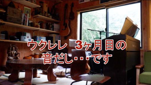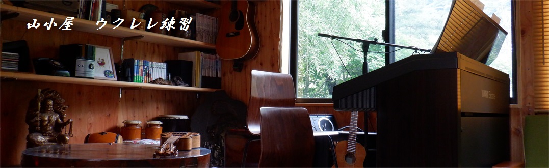 山小屋でウクレレ練習