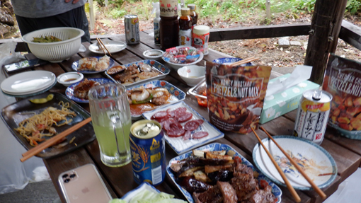 ![]() 孫の集合を待つ山小屋 午前の早い時間に山小屋へ着いた 三々五々に孫が集合する予定に成っています ![]() 沢に咲く花 一番乗りで頂きま~す 渓流に咲いてる黄色い花は雑草で外来種だ 一番乗り到着は正午頃です 駆けつけ一杯と冷たい泡を流し込んだ ![]() 食べっぷり良いの~ 凄盛りの肉 焼きそば担当の「のん」ちゃん てんこ盛りの肉を手にしているのは「あい」ちゃんだ ![]() 伏流水で冷やします テンション上々 伏流水の水で飲み物やスイカ・メロンなどを冷やします 俺たちは飲むのが忙しいと満面の笑顔! ![]() 焼き物が忙しい 並んだね~ BBQを焼きまくる。。。 ![]() 一段落 胃袋も休憩 忙しげに動いた姿も一段落したのか? 胃袋も一休みです ![]() ツリブネソウを飾ってみた 盛り上がります 広場に咲いてるツリブネソウを頭に付けてみました 何とも似合う 可愛いの~ 爺様バカ・・・笑 ![]() ピザが美味い 特大のエビ ピザや焼エビが美味い 箸が止まりませんでした・・・笑 ![]() ホタテ ほだで! 露天風呂の一コマ 露天風呂に浸かっていると孫が写真撮ろうと来ました 何歳に成っても可愛いですね~~ ![]() 生オケの始まりだ 生演奏で~す 夜は生オケで盛り上がりました 何曲 歌ったのか? 熱い夜は眠らない 楽しく時が流れます ![]() 夜中まで盛り上がる 太古叩いて! 〆は盆踊りのリズムに合わせて和太鼓でした いや~ 恒例の山小屋で集う 今年も大成功です・・・笑 動画をごらんくださいね! 戻り |