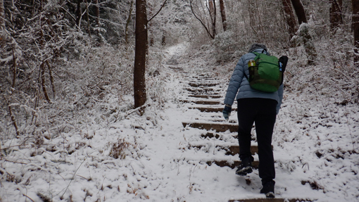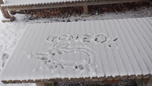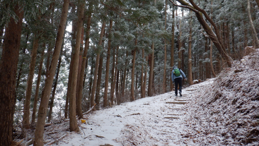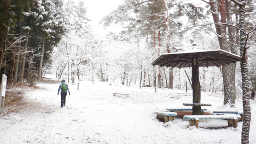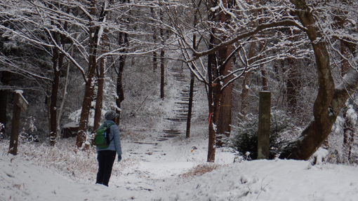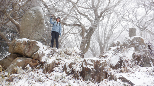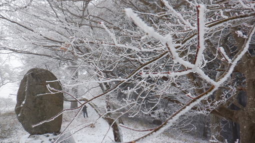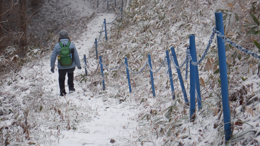 ![]() 林道終点 天気予報は5mの風 雪でした しかし無風に近い穏やかな朝を 迎えたため急遽 白い化粧をした宇津峰山へ登ることに成りました ![]() 馬場平駐車スペース 登山口鳥居 登山口まで来る道中は雪化粧で! 山に近くなるに連れて積雪が多くなりました ![]() 登り口の東屋 粉雪被る枝 スタートはAM10:50分 木々に被る綿雪を見つけて暫し雪遊びを楽しみます ![]() 道 標 最初に現れた階段の道 緩斜面を進むと階段の斜面が現れた ![]() 結構な斜度 分岐に在る階段 写真で見るより急斜面の登山道をゆっくり上ります ![]() 動物の足跡 杉林の登山道 雪面に動物の足跡が点々と並んでいました ![]() 樹氷に変わる 気温急降下 標高を上げると木々の綿雪が樹氷に変わります 此のあたりから急降下の気温 ![]() 山頂鳥居 山頂の東屋 山頂に着くころには禿頭のSEI 頭が霜焼けに成ると帽子をかぶるのでした・・・笑 ![]() 山頂広場の岩場 山頂の碑 駐車場で単独の人に会ったが 此処まで登る間に誰とも会う事はなかった ![]() 石 碑 下山路 山頂広場に在る東屋で10分ほど休憩を楽しみ下山です 鎖場の在る道は氷や雪で滑り慎重に下りました ![]() 案内板 御井戸の清水 斜度の在る道を下りきると清水に出ます 奇麗な伏流水がコンコンと湧き出ていました ![]() 清水の分岐 花見台 此処からは林道歩きに変わります 歩き始めて直ぐに東屋の在る花見台に到着した ![]() 雪 絵 林道に在る分岐 東屋のテーブルに雪絵を書き なかなか上手くいったと自己満足でした 果たしてこれは何なのか(ウサギ)に見えたら拍手をお願い致します・・・笑 久しぶりに雪山を歩いた様な錯覚を楽しみました 動画をごらんくださいね! 戻る |