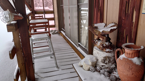 ![]() 新年の大雪 2021年の大雪記録です 山小屋へ行く道は電柱の交換で通行止めでした ![]() 小屋への林道 秋元湖水門 秋元湖側から迂回して小屋へ向かった ![]() 水 門 林 道 林道も除雪されています ![]() 東小屋 除雪跡 小屋周辺の積雪記録を残しました 去年は降雪が少なく暫くぶりの大雪です ![]() 薪小屋脇 小屋前 ![]() 積雪60~70cm 動物の足跡 ![]() 小屋前が埋まりました 除雪跡 ![]() 小屋の後ろ 通路の状況 ![]() 雪模様 ウッドデッキ ![]() 雪被る小物 東小屋全景 ![]() 東小屋テーブル 薪 釜 動画をごらんくださいね! 戻る |