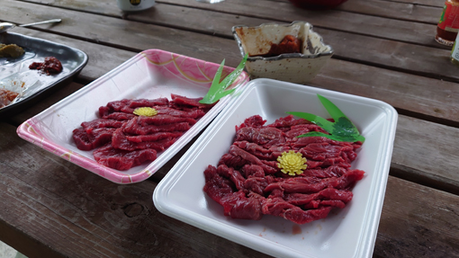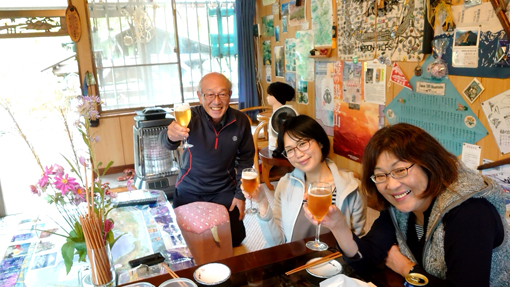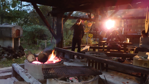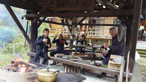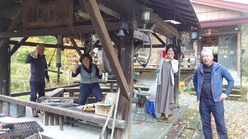 ![]() 山小屋の広場 山小屋で芋煮会を開催しました 久しぶりの再会を楽しみに小屋で準備をします ![]() すすけた 看板 焚 火 小屋の看板は煤けてきました 焼き物を作る為に焚火をして火をおこします ![]() 芋煮の火を起こす 焼き鳥を作る 準備万端と焚火を見つめる姿が在りました 側らで焼き鳥作りをする二人の笑顔が弾けています ![]() 三々五々集合 串刺し名人 小屋に着くなり焼き鳥の串刺し名人が大活躍でした (笑) ![]() 部屋で暖機運転 前夜祭の時 外は寒いと小屋に入り暖機運転をします ![]() キノコ狩り ちょっとの時間で! 芋煮の具材にする為キノコ狩りが忙しい 僅かな時間でカゴ皿がいっぱいになりました ![]() 具だくさん芋煮 ミズの実 出来上がりの芋煮を頂きます ミズの実も結構採れた ![]() 焼き鳥 馬刺し 食材は仲間が持ち寄った自慢の品です 味付けも各自が腕に寄りをかけて作った極旨の料理が並びました ![]() 再開を楽しむ 元気な仲間 食べて 飲んで 笑って 溜まってたストレスを発散させリフレッシュいたします ![]() 夜更けの時 気温低下 夜更けの時が来ると一気に気温が下がる! しかし雨の予報だった天候も好転して穏やかな一日となりました ![]() 小屋の中で! 燻 製 小屋へ入ると剣岳の写真を使ったカレンダーをSyouさんから頂きました 燻製の香りが気に成る一時でもあります ・・・・笑・・・・ ![]() 喜多方ラーメン すいとん 本場 喜多方ラーメンを食べ 次の朝は! 本当に久しぶりの「すいとん」が出てきました 自慢の一品は味自慢でもあります ![]() ミズの実 翌日の山小屋 ミズの実も山小屋で採れた物です 翌日は青空が覗く 昨日も夜中に雨が降っただけで芋煮会日和だった ![]() 小さな沢 大きな松の木 小屋の風景も年月が経つと様変わりです ![]() 解散前の集合写真 母成峠の名水 解散前に東小屋の前で集合写真を撮りました 帰路にある峠では伏流水「母成の名水」を汲み帰宅です 晩酌の水割りは多分美味しい一杯になったことでしょうね~ 皆さん また逢う日を楽しみにしています 動画をごらんくださいね! 戻る |
