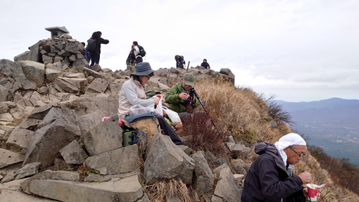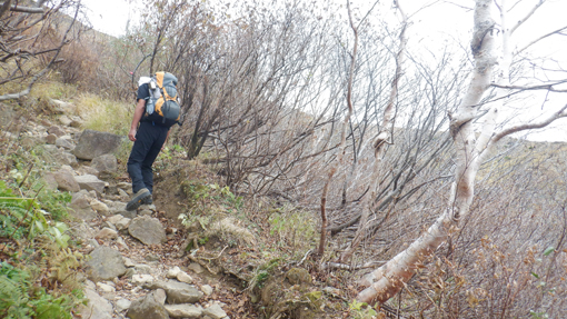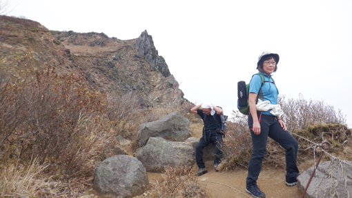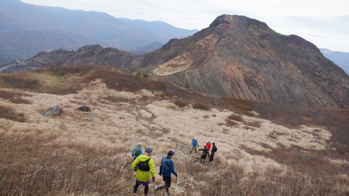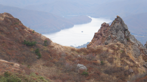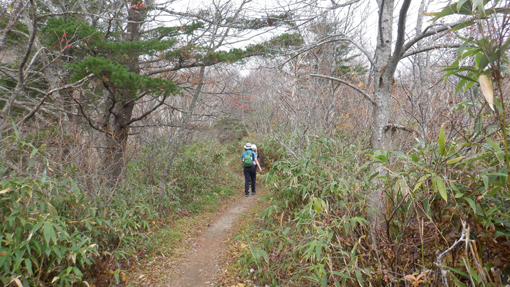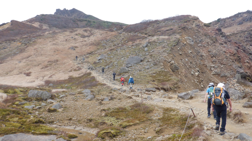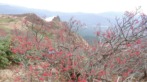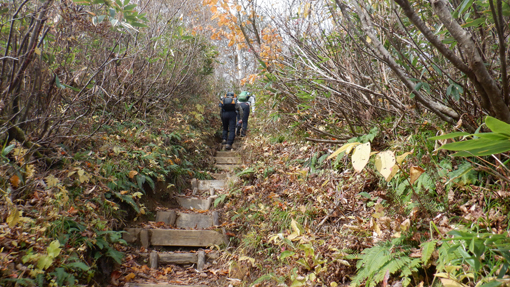 ![]() 山頂より(噴火壁と櫛ヶ峰) 久しぶりに磐梯山へ登りました 曇り空ですが風もなく歩きやすい陽気です ![]() 赤埴林道登山口 AM9:50分スタート 赤埴林道終点に在る駐車場に車を止めて出発いたしました ![]() 笹薮で見つけた? 赤埴山分岐 何か笹の根元に見つけたようです?が 此処はパスしよう (笑) 最初に現れた道標は赤埴山の分岐です ![]() 緩斜面を歩く! 沼に映る影絵 しばらくは緩斜面の歩きとなる 登山道わきには小さな沼が在り影絵を楽しむことが出来た ![]() ぶら下がる! 沼ノ平(石碑) 木にぶら下がり笑顔満開の二人の姿が在りました 山は子供心を引き出してくれるのですね~ ![]() 渋谷登山口分岐 急坂始まる スキー場(今は閉鎖)から登ってくるコースの分岐です 此処から先は急斜面になり少しだけ絞られる ![]() 振り返り沼ノ平 コルにて休憩 櫛ヶ峰のコルに着きました ![]() 眼下の檜原湖(手前は赤沼) 磐梯山噴火壁 コルまで来ると無木立地帯と変わります 山々は荒れたガレバとなり 噴火壁の切れ落ちた壁を覗くことが出来た ![]() 櫛ヶ峰 コルの分岐 後方は荒々しい姿の櫛ヶ峰です 分岐の道標で写真のおさまり急坂を進むと弘法清水だ ![]() コルの無木立域 振り返る! コル近辺は殆ど遮る物がありません! 展望を楽しみながら進むことが出来ます ![]() 八方台分岐 ナナカマド 急登を登り切ると八方台の道標に着いた 此処の斜面はナナカマドの赤い実が連なり彩が鮮やかです ![]() 天狗岩越しの檜原湖 弘法清水小屋 天狗岩に押されて着いたのが弘法清水小屋だ 帰りに寄りますと声をかけて山頂を目指し足を進めます ![]() 弘法清水 愛の鐘 此処で一息 弘法清水の美味しい水で喉の渇きを癒した ![]() 稜線より眼下の風景 櫛ヶ峰が鎮座 尾根からは眼下の湖や 吾妻連峰の山々を望むことが出来ます ![]() 山頂より田園風景 磐梯山 山頂 山頂には登り始めて2時間で到着だ 汗して登り山頂の冷風に曝され体温が急激に下がります ![]() 尖がりの賑わい 下山時の様変わり 尖がりの隙間を見つけて30分の休憩を楽しみました 下山時の姿が一変致します 夏の姿から真冬の防寒対策と変わった姿が在りました ![]() 山頂より猪苗代湖 弘法清水小屋(田中陽希) 大きな湖もテッペンから見れば一望できます 下山時は弘法清水小屋に寄り道だ 冷え切った体に温かいナメコ汁を頂きます 身も心も温まるとは この様なときに使う言葉なのだ・・・笑 田中陽希さんの百名山ひと筆書きのサインが在りました ![]() 黄色い花 下山時の赤埴山 下山道で見つけた小さな黄色い花がチョー可愛いです 赤埴山の姿を見ながら下山路を進みました 何回来ても磐梯山は良い山ですね~ 動画をごらんくださいね! 戻る |