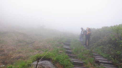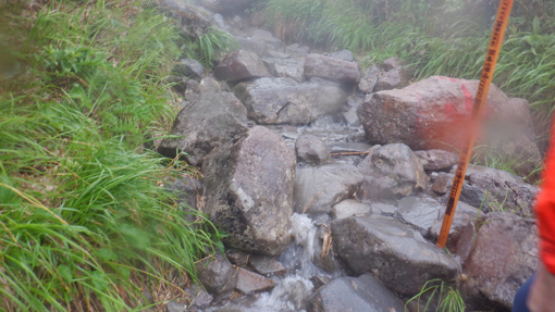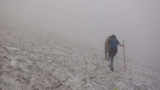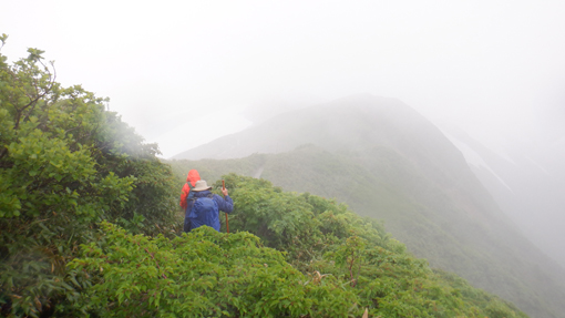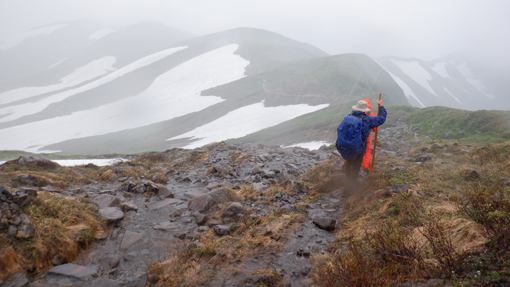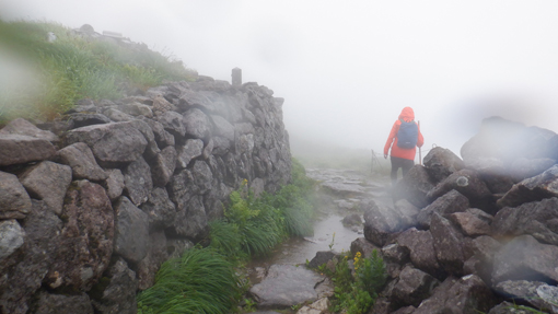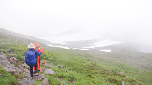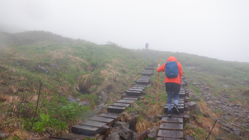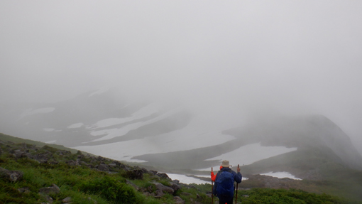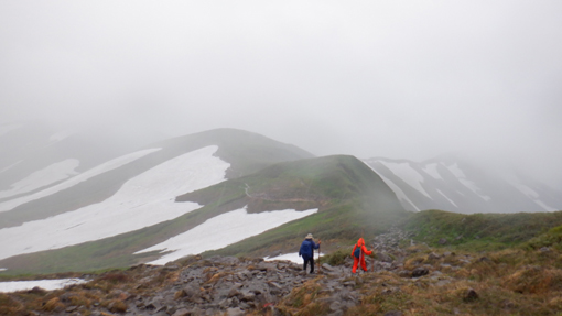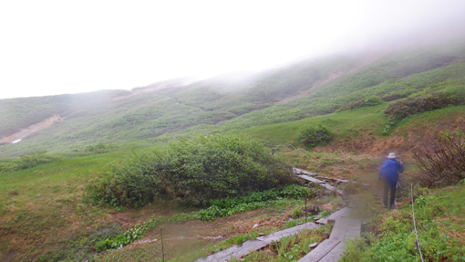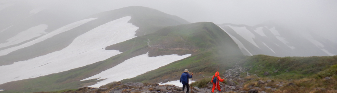 ![]() 姥ヶ岳の雪渓 11日は月山へ 宿の外を見ると土砂降りの雨が振っています 決行するか迷ったが宿を後にして姥沢駐車場へ向かった ![]() 月山登山口 姥 沢 駐車場に着くと あら不思議雨がピタッと止んだのです しかし 喜ぶのが早すぎたのか道中は! ![]() 月山リフト リフト終点道標 月山スキー場のリフトに乗り終点へ ガスで霞んでいるが今のところ雨は止んでいます ![]() ガスに霞む木道 姥ヶ岳分岐 此のまま降らないでくれれば良いがと話しながら 木道を登り姥の分岐に着いた ![]() チングルマの山肌 お花畑 ![]() イワカガミ コケモモ 暫く お花畑の中を通り足元の花を楽しむことが出来ました ![]() 雪渓を登る 谷の木道 姥ヶ岳の谷に残る雪渓歩きになります 渡り切ると尾根に出た ![]() 丑首分岐 ウラジオヨウラク 此処は 丑首の分岐です 途中から降り出した雨は止みそうにありません! ![]() ヨツバシオガマ ウサギギク ![]() シャクナゲ ダイモンジソウ ![]() 川になった登山道 鍛冶小屋跡 お花を楽しみながら急斜面を登ると鍛冶小屋跡に出た 此処から山頂までは30分くらいです ![]() 月山山頂神社 神社本宮 約2時間40分で山頂到着 通年は参拝者や登山客で賑わっているが人影は疎らです 25回目の山頂神社へお参りを終えて休むこともなく下山でした ![]() 登山道の様子 クロユリ 登山道はご覧の通り川の様です クロユリの花一輪を見つけて写真に収めた ![]() 山頂小屋 下 山 頂上小屋前はガスで視界が悪く雨も大粒になってきました ![]() 雨の登山道 ガスに覆われた尾根 食事は歩きながらパンをほうばり続けます ![]() 雨に打たれて! 歩き続ける~ 写真では解らないが強雨だ ![]() 流れ早し登山道 尾根を進む! 登山道は何処へ 渓流の流れのような雨水は雪渓までも溶かし始めた ![]() 最後の雪渓歩き 谷筋の木道 丑首分岐から雪渓に取りつくと体の急変が! 何と今まで山登りで経験したことが無いようなひざの痛みが出て 歩くのも困難な状態になる。。。 動画にもありますが横歩きや金剛杖を使って なんとか無事に下山することが出来ました 30年の願をかけて残すところ5年(5回)の出羽三山参り 必ず完結するぞ~と気合が入るSeiです ![]() リフト山頂駅 今日の宿「あおやぎ」 下山した私たちは今日の宿へ直行致しました ![]() かるくカンパイ 人形に癒されて やさしく迎えてくれたご主人に近くに在る 温泉入浴券を頂き汗を流した ![]() 御婆さんと一緒 蔵の宿 宿に戻れば至福の時が流れる! 温もりのある部屋へ案内され大好きな泡を頂くのでありました ![]() 宿の客間 創作料理 夕食の時間になると宿自慢の創作料理が次々と出てきます 地元の野菜をふんだんに使った極美味が並ぶ ![]() 焼きおにぎり 朝 食 一日一組の予約しか受けない蔵の宿「あおやぎ」さん 次の泊りは何時にするかと楽しみな宿を見つけたのであります (笑) ![]() 宿の庭 宿のご夫婦 帰りのお見送りを頂いた時の写真です 本当に優しいご夫婦で料理は素晴らしい工夫をされていました 又お世話になりたいと思います宜しくね~ 動画をごらんくださいね! 戻る |