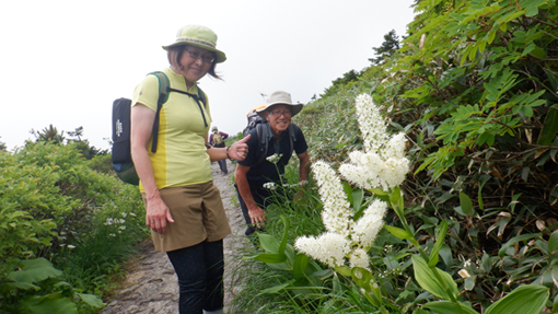 ![]() 八幡沼 秋田県 二日目は八幡平探索です 生憎の曇り空ですが幻想的な風景が広がっていました ![]() ハイキングコース 八幡平山頂 まだ元気なコバイケイソウが足元を飾っています AM9:30分に峠下の駐車場から歩き出し山頂に着いたのはAM10:10でした ![]() 湿原の木道 湿原の様子 山頂から戻り八幡沼へ下ります 沼周辺を歩き湿原の中を探索しました ![]() ニッコウキスゲ 木道のワタスゲ 福島のニッコウキスゲは終わりましたが! 此処は盛りです ![]() 池塘の影絵 池塘群 池塘群の先まで行くと分岐に出た 其処から沼を周回して駐車場へ戻る2.5時間のハイキングを楽しみました 詳しい記録は動画をごらんくださいね~ 動画をごらんくださいね! 戻る |