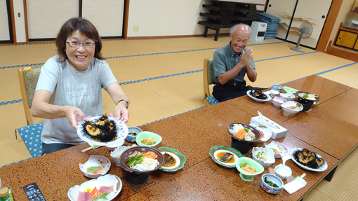 ![]() 唐桑半島漁港 お盆休みを利用して唐桑半島へ釣りに出かけました 高速道を北上します 途中の休憩はトイレだけで人込みを避けて目的地へと車は走しる。。。 ![]() 湾内は静かだ 釣り開始 唐桑半島に在る漁港へ着きました 外海は大荒れですが湾内の防波堤が風除けとなり静かです ![]() 初ヒットはアジ 良い感じと気合が入る 最初は釣れなかったが撒き餌を流して20分ほどすると! 魚が動き始めたのかアタリが出てきた ![]() 次々と釣れる ダブル・トリプル 釣れ始めると止まらない・・・笑 ![]() 魚を外すのが忙しい アジ・サバ・イワシ ダブル&トリプルと連続して休む暇がありません! ![]() 腰が入る 大漁です 腰が入り竿を上げる良い引きだったが 逃げた魚は大きい 悔しがるSu-さんでした 小雨が降り出したので撤収します ![]() お泊りの宿 宿から海岸 お泊りの宿は民宿「なぎさ」さんだ 気立ての好いお婆ちゃんが迎えてくれます 直ぐに笑顔が似合う御爺ちゃんも姿を見せてくれた ![]() 料理が凄い! ウニに大喜び 風呂に入り準備された夕食の席へ行くと! 見事な海の幸が並んでいます その後も出てくる料理で笑顔が爆発だ 之ほど新鮮で旨味の濃い料理に舌鼓が止まりませんでした ![]() ウニが生きています 一台の車 甘い生きてるウニに大喜びのGonちゃんでした 宿は貸し切りで私たちだけです 朝食時に若旦那様から漁の様子や! 大震災時の現状を聞き津波の恐ろしさを映像で知る事が出来ました 優しい人柄に惚れた私たちは また必ず来ますと約束をして 宿を後にしました ![]() 小魚の甘煮 梅干し味の煮物 釣った魚は帰ってから直ぐに腸を出して料理します 甘煮と梅干し味の煮物に早変わり晩酌のアテとなりました・・・笑 動画をごらんくださいね! 戻る |