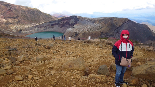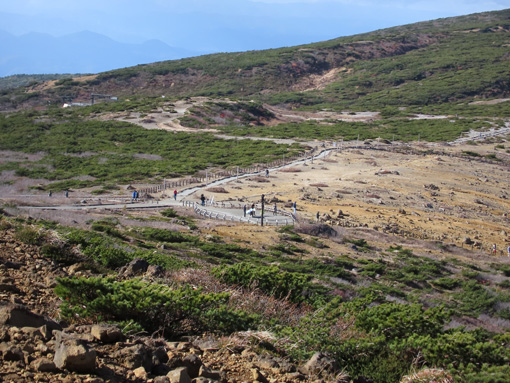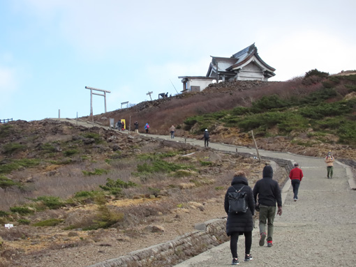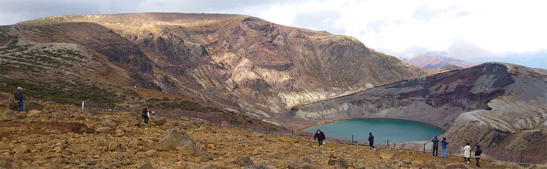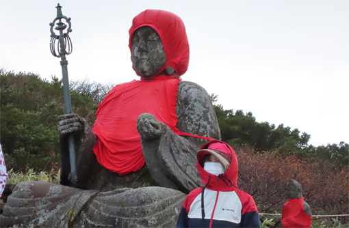 ![]() 蔵王(御釜) 蔵王の紅葉狩りにエコーラインを宮城から山形へぬけて楽しみました 青空も見える天候だが風も強く気温が低い一日です ![]() 三階の滝 紅 葉 最初に寄ったのが三階の滝だ 紅葉も盛りで豪快な流れが遠望に見ても解る迫力です ![]() 紅葉道 紅葉の山肌 道路の木々も錦色で車窓からの眺めを楽しむことが出来ました ![]() 蔵王寺 不帰の滝 蔵王寺に回り参拝を済ませ御朱印帳に記を頂きました 駒草平からは不帰ノ滝が岩肌を滑る落ちる様に流れています ![]() 刈田岳(分岐) 刈田神社 有料道路を使って刈田岳へ寄ります 強風と低温で体が凍える様な天候にもかかわらず車がいっぱいだ ![]() 登山道 御 釜 防寒着に身を包み御釜まで来ましたが長居は無理です ![]() 刈田岳 山 頂 刈田岳山頂まで急ぎ足で登り! 直ぐに引き返す姿が在りました・・・(笑) ![]() 地蔵岳 地蔵尊 地蔵岳はガスが係り見え隠れです 山頂駅の温度計は氷点下7度?寒いですね~ 寒い一日でしたが紅葉と車旅を楽しむことが出来た 動画をごらんくださいね! 戻る |