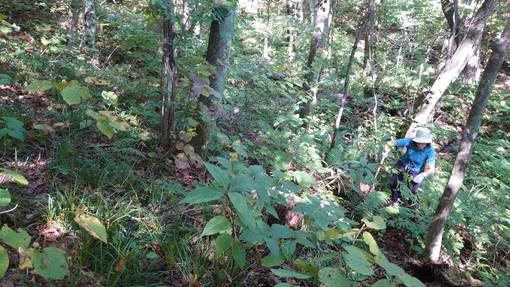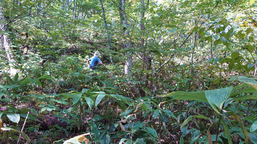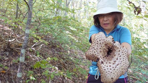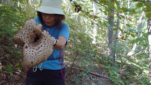![]() 初めて入った山 今日は初山でキノコ狩りへ挑戦します 何時もの「シロ」ではない為に勝手がわからない山だ ![]() 沢へ下り登り返す 斜度の在る山肌 一旦沢へ下りてから急斜面を登り尾根へ出ます ヒバなども交じりキノコの期待は薄いかもと案じながら歩きました ![]() わからん?不食 キノコ このところ雨も降らない為にキノコがあまり出ていません! ![]() 彷徨う林 藪も多い 足元をキョロキョロ キノコの姿を追うが・・・(笑) ![]() ハナビラタケ 初収穫 斜面を下っていると古い木株にハナビラタケを見つけました お~~ 出ているど~~ 数十年のキノコ狩り歴があるがハナビラタケを採るのは初めてです 少し変色しているが!しっかりした個体だ 之はご馳走とかごに入れる姿が在ります (笑) ![]() 好い枝ぶり 発見したイノハナ その後 キノコの姿が無いので諦めて下山していると! なんと 大きな イノハナを見つけました ![]() 之は大きい 凄い! 今年採ったイノハナの中で一番大きいです ![]() 大きな背負篭にいっぱい 手にするハナビラタケ 背負篭に入れると二つでいっぱいだ 初山での大収穫です イノハナは炊き込みご飯 ハナビラタケは和え物や炒め物で頂く予定です 動画をごらんくださいね! 戻る |