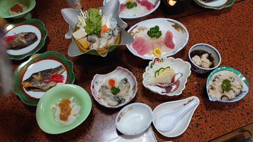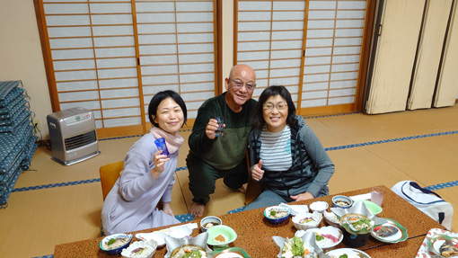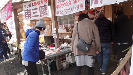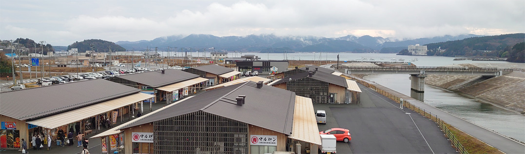 ![]() さんさん商店街 仮設の商店街の時に来て以来暫くぶりに訪れました 驚くほど奇麗に変身した「サンサン商店街」です ![]() 写真館の案内 道の駅道標 お店には観光客や買い物客の姿が行き交い賑わっていました 駐車場や川向かいには公園などが整備されています ![]() 南三陸311メモリアル 隈研吾さん設計 隣接して出来た建物が南三陸311メモリアルで 隈研吾さんが設計した木の温もりを感じる素晴らしい建物です ![]() 311展望台より市場 買い物客 建物に在る二階の展望台からは・・・ 市場や公園・海岸線まで一望できます お店に入り海産物を物色してお気に入りの品をお土産にゲットしました ![]() コーヒーショップ 川に架かる橋 商店街に在りましたコーヒーショップで焙煎したてのコーヒーを頂きます 香りや豆の違いが判る???美味しい一杯でした(笑) ![]() 生きのいい魚 干物が並ぶ お店には所狭しと新鮮な魚や干物が並んでいます ![]() 商店街の様子 311展望台 商店街を二回りして終了 最後に展望台から「さんさん商店街」を眺めて帰路についた ![]() 気仙沼湾横断橋 大 島 気仙沼湾横断橋を渡り唐桑半島へ行きます ![]() お泊りの民宿 漁 港 お泊りの宿は民宿「なぎさ」さん 美味しい料理と優しいお婆ちゃんと御爺ちゃんがお持て成しです 漁師であるご主人は忙しい方で空手の指導者でもある為に 宿の賄えは婆ちゃんと爺ちゃんが切盛りしています ![]() 民宿の広場 部屋の置物 海岸線の高台に宿はあります 東日本大震災でも建物は無事でした ![]() 豪華な花瓶 遠洋漁業船 宿の置物は時代を語るのにふさわしい物ばかりです 遠洋漁業に出ていた御爺ちゃんが乗っていた?船の模型がありました ![]() 幌船の模型 宿のご主人 忙しい中でも顔を出してくれたご主人です 物知りで地域の活躍はもとより子供たちの育成に尽力されていると聞きました ![]() 宴会突入 生きてる料理 お楽しみの宴会に突入です 生きた料理と言う言葉が似合う品々が並び箸が進みました 写真は一部で此の後に次々と料理が・・・美味い ![]() 宿のお婆ちゃんと御爺ちゃん 帰る前に一枚 帰る時には最後までお見送りを頂き! お婆ちゃんの手作り惣菜をいっぱいいただきました 本当にありがとうございました 来年も予約完了・・お邪魔させてくださいね~ ![]() 唐桑商店 スタンドの社長さん 唐桑半島に行ったら必ず回るガソリンスタンドが在ります 社長さんがとても面白い方で会うのが楽しみだ 今回も私たちの車を見るとお帰りなさいと迎えてくれました モットー 「笑顔は24時間営業中」です 寄り道しただけなのに帰り際に・・・ 採りたてのアワビやカツオのたたきを頂きました 社長さん来年も宜しくお願い致します (笑) 動画をごらんくださいね! 戻る |
