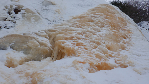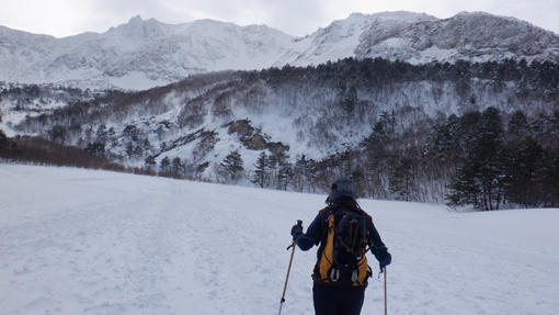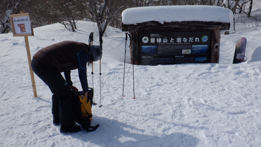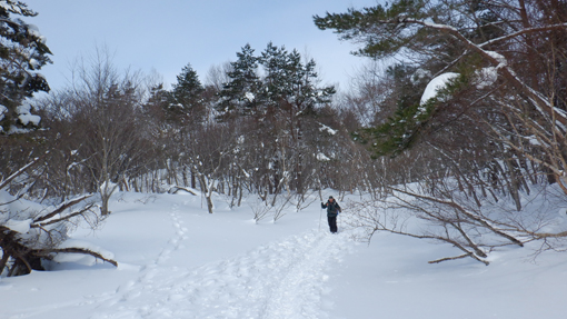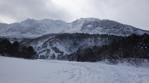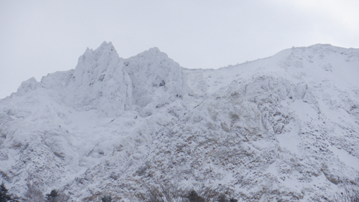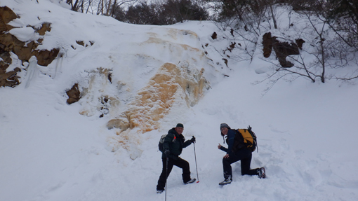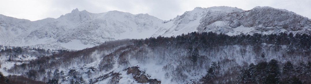![]() 裏磐梯「噴火壁」 今日は裏磐梯スキー場からスタートして幻の滝に来ました 曇り空だが風も弱く楽しみな歩きです ![]() 裏磐梯スキー場 リフトに乗る 山歩きの人は一番下の駐車場に 車を止めるようにと案内板がありました 車を止めた場所からはゲレンデの急斜面を登らなくてはなりません・・・(笑) 登り切ったところにゲレンデハウスが在りリフト券を購入した ![]() ゲレンデ ブランコ ゲレンデTOP(奥に見えるは檜原湖) チョット楽して高度を稼ぎます ゲレンデの中には松の巨木を利用したブランコが在り 親子とみられる姿が楽しそうでした ![]() 準備OK 櫛が峰と磐梯山コル ゲレンデTOPで準備をして歩きだします ![]() 幻の滝へGO- 雲行きが怪しい 滝を目指して林の中を進む! 山や稜線が雲に隠れたり出たりと忙しい移り変わりだ ![]() 圧雪されたトレース 尖がりの裾野へ 雪面は圧雪されていて歩きやすい 奥に見える尖山の裾野がイエローフォールです ![]() 噴火壁の稜線 銅沼(あかぬま)を歩く! 裏磐梯の稜線が大きく見えるようになると 赤沼の上を歩くようになります ![]() 噴煙上がる ブロック雪崩 山肌の岩が見えるところから噴煙が上がり 近くの雪面は雪崩れていました ![]() 少し青空が見える 西から流れる雲 お~ 青空が出てきた と 喜ぶも 直ぐに西から流れて来た雲に覆われてしまいました・・・残念 ![]() 圧巻の雪景色 背丈が伸びた木々 真っ白く雪化粧の天狗岩がアルプスの山の様で気持ちが良いです 此のあたりの雑木の背丈が大きくなったように見えた ![]() 天狗岩が迫る 噴火壁が寄って来る? 滝の近くになると山々が迫り岩壁が寄って来る いよいよ目指す幻の滝です ![]() イエローフォール 見事な氷瀑 ゲレンデTOPからは50分で到着だ 厳冬期にしか現れない幻の滝「イエローフォール」に到着です 此処まで来るのに遭遇した人は8名くらいで思ったより少ない! やはりコロナの影響なのでしょうかね~ 分厚い氷の層が重なる自然の造形美が圧巻だ 何度も来てる所なのですが来るたびに表情が変わり感動します ![]() コースを変えて下山 赤沼道標 15分の休憩で滝を後にしました 下山は少しだけコースを変えて歩きます 赤沼の道標で写真を撮り車のデポ地へ! 往復で逢った人は20名前後で所用時間は2時間30分でした 動画をごらんくださいね! 戻る |