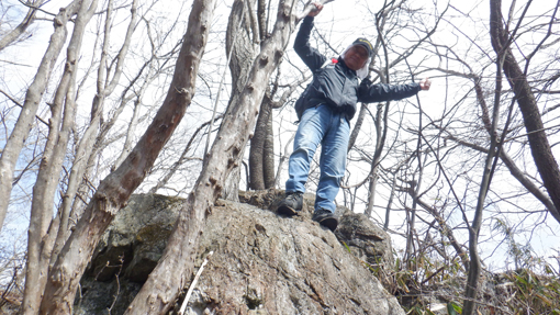 ![]() 宇津峯山(山頂広場) 里山の陽だまりを歩くために来たのが宇津峯山です 天気予報通りなら楽しめるはずだ ![]() 足尾神社登山口 石段を登る 一番長いコースは此処かな?と足尾神社登山口へ 登山口には車が3台止まっています ![]() 登り始めは急坂 足尾神社到着 登り始めは急坂が続く山道だ ![]() 気合の入る道標 神社の祠 最初に現れたのは足尾神社です 貫禄のある道標が歴史を感じさせ祠のお神酒も飲みかけ? ![]() 眼下の風景 シュンラン 南斜面が空いていて展望を楽しむことが出来ます 陽だまりに咲くシュンランが可愛い! ![]() 展望台から白い尾根 稜線の三角点 稜線からは白い尾根が連なる山々が見えます 足もとに見つけた三角点・・・どうやら此処が境界の様だ ![]() ユーチューブの出会い 真新しい看板 山頂に向かって歩いていると! あ・・・ユーチューブの・・・と声をかけられ 挨拶をして話をすると動画へ遊びに来てくれてるNさんでした 笑顔の素敵なNさん また何処かでお会い出来たらうれしいです ![]() かくれんぼ? 山頂広場 稜線の木々は裸で寒そうだ 何を考えたか木に隠れる様な行動をする 不思議な姿も在りました (笑) ![]() 宇津峯山頂 山頂の社 1時間10分程で山頂に着きました 道中に3人ほどの山人に会いましたが誰も居ません! ![]() 東小屋 今日は元気だ 風が強いために休まず下山することにします まだ体力に余裕があると見えて飛んだり跳ねたりしていました ![]() 尾根のシュンラン 日向のカナチョロ 登山道にはシュンランが多く花を楽しめます 枯葉の中に光る物体を発見! よ~く見ると陽だまりで甲羅干しをしてたカナチョロさんでした ![]() 岩に登る 蝶の姿を見つけた 何処までも元気な姿は岩の上です 陽射しの中に今度は蝶の姿を見つけました こんなに早く孵化するのですね~ ![]() スミレの花 下山路 足元の道にはスミレの花が咲いていました 花が少ない今時期には嬉しいですね~ ![]() 若葉の芽吹き 小さな花発見 裸の木々の中に若葉が出ています 隣りには小さな花芽を付けた木も見つけました 今日は陽だまりの生き物と過ごした楽しい山歩きの一日でした 動画をごらんくださいね! 戻る |