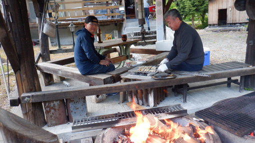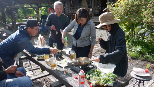 ![]() 裏磐梯の山小屋 山小屋の休日は山菜&野草を採って食べて飲むために 群馬・仙台・福島の仲間9名が集合しました ![]() タニウツギ オオカメノキ 山小屋に咲いてるタニウツギ・オオカメノキです ![]() セイヨウカンボク レンゲツツジ オオカメノキに花はそっくりだが違う レンゲツツジも盛りだ ![]() 仲間を待つ山小屋 幼虫の泡(巣) 森に囲まれた山小屋は自然の宝庫です ![]() 野鳥の巣 奇麗な花? 山菜を採るために草の密集した所を歩いていると! 足元に野鳥の巣を見つけました ヒナが元気に巣立ってくれることを願っています ![]() 焚火(準備完了) 山菜&野草 午後 そろそろ仲間が到着する時間になりました ![]() 採った山野草 天ぷら 採って来た山菜や野草を天ぷらにします フキは炒め物でワラビは熱湯をかけて炭酸を振りかけアクを抜きました ![]() ハチクタケを焼きます 渓流のイワナ ハチクやネマガリタケは炭火で焼き上げる そこに釣り上げたイワナも仲間入りです ![]() 到着順に飲みます 賑わう山小屋 到着順にスタートすると三々五々に次々と到着です ![]() 作り立てを食べます 焼き鳥の鍋奉行 採りたて作り立ては本当に美味い! ![]() 露天風呂 シャクナゲ 食べて飲んだら露天風呂で安らぐ時間です 山小屋の周りは花が盛りだ ![]() サラサドウダンツツジ ベニサラサドウダン ドウダンツツジも奇麗に咲いています 月末の休日は山小屋で楽しく過ごすことが出来ました 動画をごらんくださいね! 戻る |