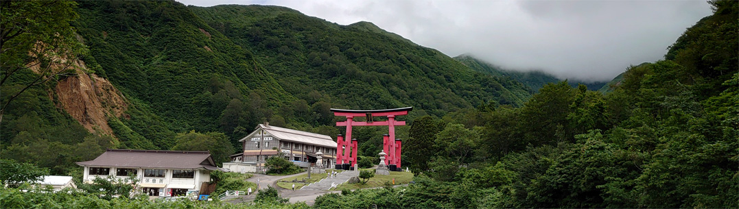 ![]() 湯殿山 今年も来ることが出来ました 出羽三山参りの初日は湯殿山から羽黒山へ巡ります 健康でなければ連続のお参りは出来ない! 願掛けて26年目(26回)を迎える事が出来ました ![]() 本宮入口 願い牛 Gonちゃんは今年で8年連続(8回目)のお参りです 金剛椎の焼印を眺めて感無量の様子でした ![]() 小林先生 紅い橋 参道でバッタリ遇ったのは小林坊の先生です 長年 宿坊でお世話に成りました 先生と最初にあった時に30年連続で来ますと約束をしたのは! 26年前で宿坊での願掛けでした 75歳に成った今・・・ 之から4年後には30回目を迎えます 願が叶った暁には先生と巡礼談義を交わせればと思っています ![]() 連なる鳥居 湯殿山大鳥居 参道を下り大鳥居まで道中の神様に参拝しながら歩いてきました 車の動中には大粒の雨が降っていましたが! 湯殿山に着いた時は雨も上がり清々しい気持ちでお参りが出来ました ![]() 羽黒山会館 御手洗場 午後1時が過ぎた頃に羽黒山へ到着です 三神合祭殿の茅葺屋根は今年も葺き替え工事が続いていました ![]() 三神合祭殿と鏡池 大きなアオガエル 鏡池はご神体と考えられ 神が姿を現す池と聞きます 高さが414mと言う羽黒山頂の池からはカエルの鳴き声が聞こえ! 石柱には大きなアオガエルが張り付いていました 初めての出来事に神秘の世界へ入り込んだような気持ちです ![]() 参拝と御朱印 鏡池から三神合祭殿 社殿へ行くと中では講の団体さんがお祓いを執り行われていました 私たちの講は高齢になり解散したために今は個人でお参りを続けています ![]() 斎藤商店 駐車場から湯殿山 参拝を済ませて何時も立ち寄る境内の斎藤商店さんへ行きました 愛嬌の好い女将さんが迎えてくれます 美味しいおでんと甘酒をご馳走に成り買い物を済ませ店を後にしました いつもご馳走様です来年も来ますので宜しくお願い致します ![]() 廃 墟 えびす屋旅館 今日の宿は志津温泉の「えびす屋」さんです 毎年お泊りしている安らぎの温泉旅館だ 優しい女将さんのお持て成しと温泉と山菜料理が大好きです 今回もいっぱいごちそうになりました ありがとうございました 気に成る廃墟は崩れ落ちています 去年来た時には形が在ったのに淋しい光景でした 早く活気のある世の中が来ることを願います 動画をごらんくださいね! 戻る |