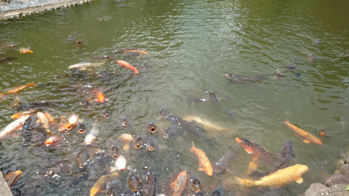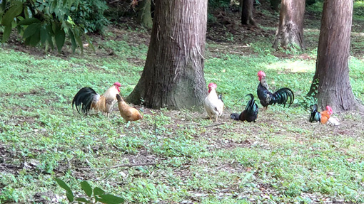 天候(晴れ) 猫 と ニワトリ と アヤメ と コイ