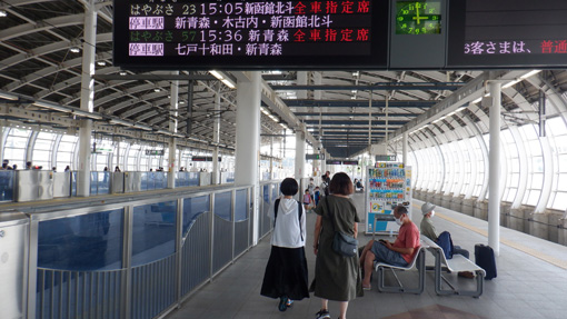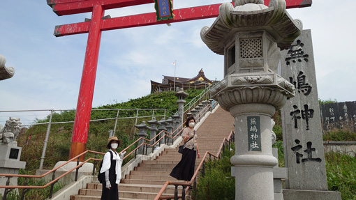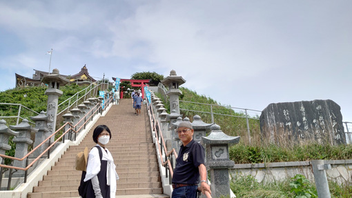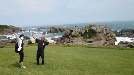 ![]() 2022 市長賞 ねぶた 6日の早朝に郡山を出て往復1000km以上を走り 初めての「ねぶた祭」を見に行ってきました ![]() 八戸駅 ホームにて! 八戸に車をデポして新幹線で青森まで行きます ![]() クルーズ船 青森港(テラス) 新幹線駅から在来線に乗り青森港へと行きました 早々に港にでて探索です ![]() 青森市内 八甲田丸 港には八甲田丸が係留されていました 青函連絡船の役目を終えて現在は博物館になっています ![]() 桟 橋 テラス席 青森ベイブリッジを渡ると爽やかな海風が気持ちが良い テラス席ではビールやサワーを飲んで祭りを盛り上げます (笑) ![]() 青森ベーブリッジ 浜風が強い 強い風に靡く髪(風)が太陽の日差しを和らげます ねぶたの時間は6時過ぎだ・・・まだ早い・・・ ![]() 人間銅像 青い海公園 桟橋に銅像が居ます 何か不思議な感じなので立ち止まり見ていると観光客が写真を撮り 振り向くと 動いた 手を振った 人でした (笑) 炎天下の中で微動だにしない凄い根性ですね~~ ![]() ねぶた団扇 ねぶたの家 いよいよ ねぶたの会場へ来ました ![]() ねぶた会場 迫力のねぶた ねぶたの入る家が在りました 此処の通りは観光客でごった返しです ![]() 感動のねぶた! 本物のねぶた! 6時30分 いよいよクライマックスが始まりました ハネトが跳ねる 大太鼓の響き 笛の音が てぶりかねが鳴ります 凄い迫力で「ねぶた」が走る 囃子がうなる 本物の「ねぶた」を見ました 此の様子は動画に記録されています ![]() 蕪嶋神社 大鳥居と社殿 二日目は蕪島神社へお参りです ![]() 石段の参道 社 殿 種差海岸の最北に位置する「蕪島」はウミネコの繁殖地として知られ 国の天然記念物に指定されています 島の上には 自身の株を上げる「かぶあがり祈願」で有名な蕪島神社があり 御利益を求めて遠方からも多くの方が訪れます 上記のように案内されています ![]() 神社境内から海岸線の風景 眼下の海岸線は波が荒く濁っていました 今日は海が荒れている様です ![]() 種差海岸 天然芝生 蕪島から車で30分くらい海岸線を走ると種差海岸へ着いた 種差海岸の代表的な景観 自然の芝生が海の水際まで接している 景観は どこか異国情緒を漂わせ 景色を堪能する人々を 壮大な気分にさせてくれます ![]() この海岸の岩場は朝鮮半島の景勝地「海金剛」に似ているため 吉田初三郎によって「陸奥金剛」と名づけられ絶賛されました 上記は (種差海岸散策マップ)より抜粋致しました ![]() 天然芝生の絶景が広がっています ![]() 海岸の芝生を踏みしめて探索を楽しみました 今回のコースは初めて尽くしです 強行スケジュールの二日間でしたが中身の濃い満足の旅になりました Hiroちゃん Gonちゃん お世話になった皆さん ありがとうございました 動画をごらんくださいね! 戻る |