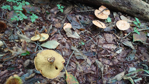 ![]() イノハナの塊り 秋に成ればキノコの季節です そこに雨上がりとなればキノコ狩りが最適だ ![]() 雑木林 雑キノコ(毒) 通いなれてるキノコのしろへ ![]() チチタケ? きのこのしろを歩く ![]() 雨上がりの山肌 これは? ![]() アミタケ テングタケ ![]() イノハナ(香茸) 凄いど~ 毎年必ず来る秘密基地(キノコのしろ)です 今までの条件からして今日あたりが一番いいと山に入り1時間20分! 岩の多い斜面に落ち葉の塊りみたいな影を見つけました ん~~ ? 何度も見返します やっぱりキノコだと確信してから濡れた斜面を慎重に下りた 辿り着いた先にはイノハナの塊りが! 大喜びですが此処は危険な斜面・・背負篭を木に括り付けてから採ります 一つ一つ 丁寧に採り 漂う香りに満足のキノコ狩りでした ![]() 本日の収穫 イノハナご飯 帰ってからキノコご飯を作ります 何度食べても 止められないイノハナご飯でした 動画をごらんくださいね! 戻る |