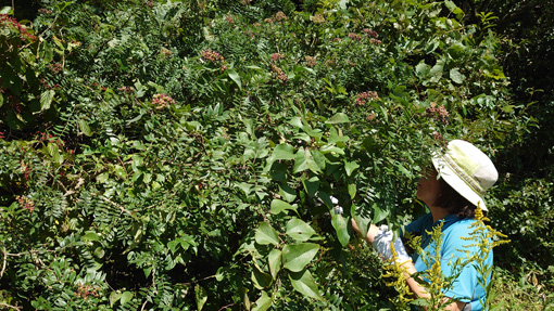 ![]() 奥会津の蕎麦畑 気温がグングン上がり山歩きには適さない状況です それでも気に成る「まいたけ山」のキノコ ![]() マイタケ山の藪 バカが纏わり付く 蒸される林に入ると汗がダクダクで! 衣類に纏わりつくバカは取っても限がない悪戦苦闘です ![]() 之はスギヒラタケ 蒸し暑い藪漕ぎ それでも時期から出撃することに成りました (笑) ![]() 悪戦苦闘の中で! 出たばかりのマイタケ 目的場所に着くと出始めのマイタケを見つけます 小ぶりだが硬く良い香りの物を採る事が出来ました もう一週間後なら大きく成長したでしょうね~~ ![]() 硬いヒラタケ 藪藪のまいたけ山 涼しい秋風でも吹いているならキノコ狩りは続行ですが! 今日は早めの撤退です ![]() 山椒の実 栗の実 山を下りてから山椒の実を摘み取りました 乾燥させてから磨り潰して薬味として使います 栗の実は虫が入り食には適さないと採取中止だ・・・(笑) 短時間のマイタケ狩りでしたがシロが解っていると採る事が出来ますね~ 10月半ばにまた出撃予定の山でした 動画をごらんくださいね! 戻る |