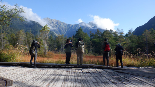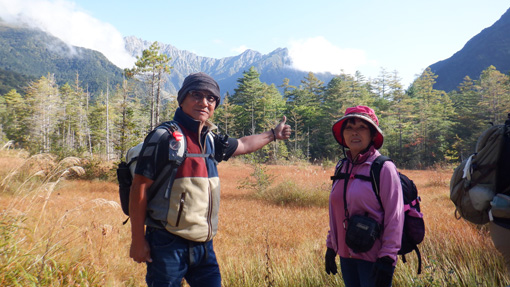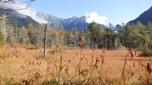![]() 草紅葉と上高地の絶景 澄み切った秋晴れの上高地へ久しぶりに訪れ! 秋色香る絶景を楽しみながらハイキングコースを歩きました ![]() 大正池を出発 大正池の辺にて! スタート地点は大正池です 早朝はガスが係り幻想的な景色を堪能しました ![]() 雲の上の山々 遠望の北アルプス 流れるガスの上に尾根が見える 徐々にガスが消えて青空が広がるようになりました ![]() 山人の楽園 草紅葉 朝のうちは肌寒ささえ感じる気温です しかしカラッとした秋晴れで清々しい気持ちの歩きだ ![]() 絶景に佇む! 草モミジの絨毯 ハイキングコースには草紅葉が広がり アルプスの輪郭もクッキリと見えるようになります ![]() 梓川の流れ 清流で一休み! 梓川沿いを歩くコースは清流の音が心地よく! 耳をすませば野鳥の鳴き声も聞こえます ![]() 絶景 絶景 絶景 ・・・加齢の障害か・・・ 昔のように感情豊かな表現を想いだすことが出来ない! ただただ 目に前に現れた風景に感動し身動きができなくなるのでした ![]() 梓川と明神岳 分岐の道標 心弾む梓川沿のToyoさん 跳ねる様に歩く姿が滑稽でした (笑) ![]() 川沿いのハイキングコース 林間の山並み! 上高地もコロナの為か人の姿がまばらです 数年前はすれ違うのにも大変だった事を思い出しました ![]() 分 岐 コースに架かる橋 田代橋を渡り対面の道を河童橋方面へと歩きます ![]() 川面越しに見える明神岳 温泉ホテル 景色が刻々と変わり 川沿いからの山並や秋色が楽しめた ![]() ソフトクリーム休憩 道 標 AM10時を過ぎたころから気温?が上がりだします ホテルの売店でソフトクリームをゲットチョイ休憩でした ![]() 碑の案内板 ウエストン 日本山岳会の手により作られた物の様です ![]() ハイキングコースの紅葉 河童橋 河童橋が見える所まで来ました 秋晴れのハイキング日和の中での探索はアッと言うまです ![]() 名勝「河童橋にて!」 明神岳 橋の袂まで来ると人影が多くなり山人と観光客が行き交い 少し賑やかな雰囲気になりました ![]() 穂高岳とともに! 梓川と焼岳 河童橋から背景に穂高岳のアングルで記念写真を撮ります 此処は何度来ても必ず見る絶景ポイントだ ![]() 名残の北アルプス 河童橋 絶景を何度も見直して脳裏に焼き付けた ![]() 上高地の絶景 バスターミナル駅 又来ますと心に誓いターミナル駅へと足を運びます 強行スケジュールでの旅でしたが感動をありがとうございました 動画をごらんくださいね! 戻る |