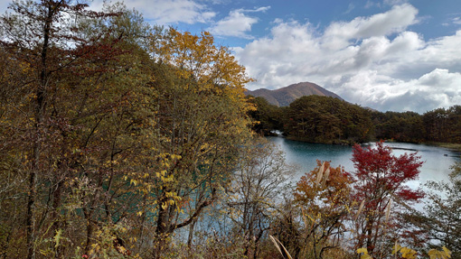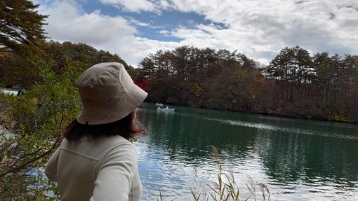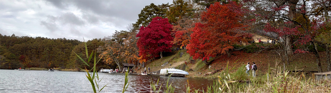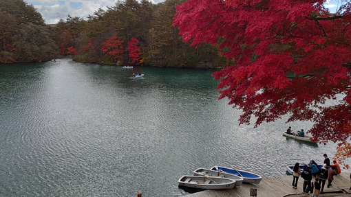 ![]() 五色沼(毘沙門沼) 太陽の日差しなく!曇る空を眺め五色沼へ来ました それでも晩秋の紅葉は 期待通りの輝きを放し残る力を振り絞り待っててくれました 落葉は道端を飾り 衣を払った木々は冬の準備をしています 毘沙門沼は泳ぐコイと手漕ぎのボートを優しく包むように穏やかでした 道行く人の笑顔が・・・ 磐梯の裾野を飾るモミジの様に映えています ![]() 満車の駐車場 船着場 駐車場へ入る道路は渋滞していました 私たちは途中の空地へ車をデポして五色沼へと向かへます ![]() 遊歩道探索 五色沼のせせらぎ 陽射しはないが赤や黄色の葉をまとった 木々は鮮やかです ![]() ベタなぎの水面 錦 鯉 雲間から青空も見えるが直ぐに閉ざされた 水面を波立たせているのは錦鯉です ![]() 晩秋の彩 湖畔を歩く! 湖畔の木々は衣を脱ぎ捨て道端を飾っています ![]() 落 葉 探索路の根 落葉の上を歩くと カサカサと気持ちのいい音が奏でられた ![]() 青空覗く雲間 毘沙門沼 毘沙門沼の展望台からは・・・ 磐梯山の勇壮が見えるはずでしたが雲の中です ![]() 五色沼湖畔のキャンプ場 バンガロ キャンプ場は冬囲いが施されていてシーズンオフだ 賑やかだった夏の思い出を抱くバンガロが静かに佇んでいます ![]() 赤く染まったモミジ 駐車場脇の神社 モミジの下を通り抜けて五色沼の駐車場へ戻り! 神社にそっと手御合わせた 茶屋のおでん ステンドグラス 松崎徹氏の立体ステンドグラスアート展 光と影が織りなす美の輝きを見学させて頂きました 素晴らしい作品が多く並んでいます 感動しながら拝見しましたが高価で手が届かない物でした 近くの茶店でおでんを食べて帰路についた (笑) 動画をごらんくださいね! 戻る |