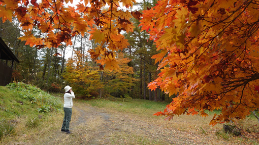 天候(曇り) 晩秋の紅葉 「空くもり 映えるモミジの 美しや」