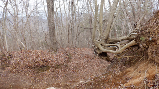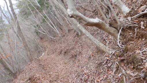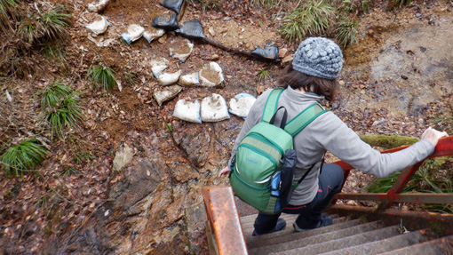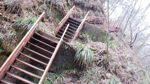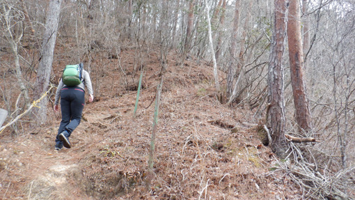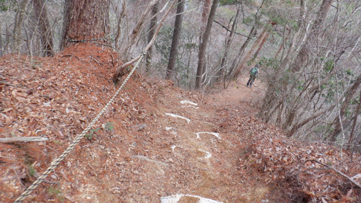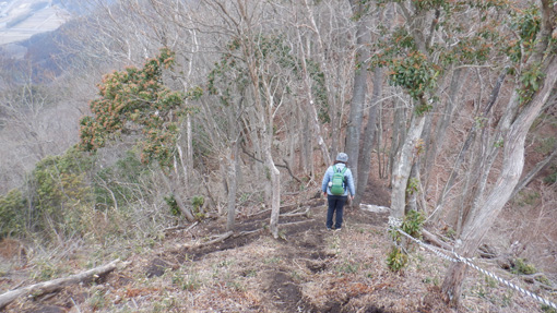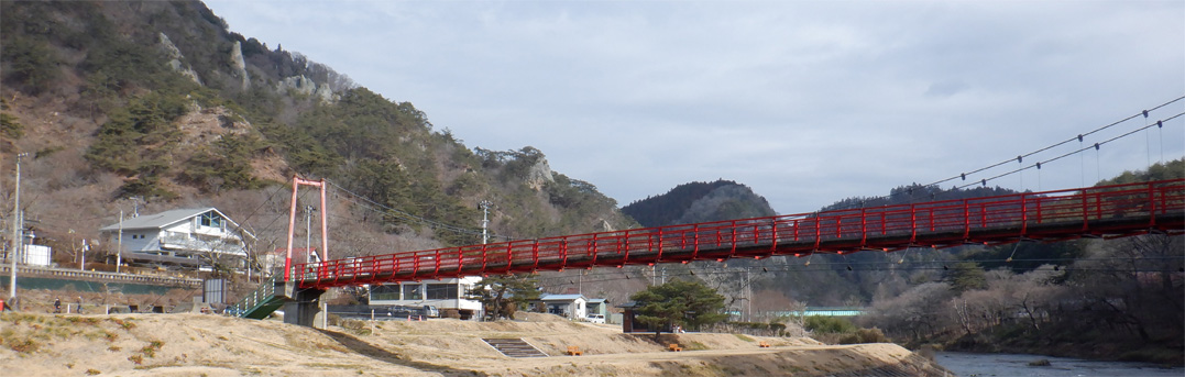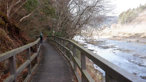 ![]() 久慈川に架かる「あゆのつり橋」 2023年初の里山歩きは矢祭町に在ります桧山へ来ました 雪のない所を選ぶと今時期は県南の山になりますね! ![]() 矢祭駅前 梅の花 矢祭駅に在ります駐車場へ車を止めてスタートだ 駅前のお店では鮎を焼いてる姿(美味そうだ)が在りますが 下山してから食べようと歩きだす ![]() 桧山コースマップ 矢祭山 登山口のコースマップを見て一番距離の在る 杉コースを選び山頂へ帰路は松コースを下る予定です ![]() 徳川光圀の碑 久慈川散策路 釣り橋のたもとには水戸黄門の碑が在りました 橋を渡り川沿いの遊歩道を進むと登山口へと辿ります ![]() 杉登山コースを登る 急な階段 此処からが登山道だ いきなり急な木の階段が現れます ![]() 登山道からの街並み 東 屋 登り始めて間もなく東屋に着きました 此処から見える景色は対面の矢祭山を始め 久慈川沿いが素晴らしいです ![]() 分岐にて! 登山道 最初の分岐は「乙女ヶ越」へと行く散策路の二又だ ![]() 険しい階段 細い足場 険しい階段があり一旦下りになるコースの様で! 階段の幅が狭く横歩きになってしまいます ![]() 結構な斜度 木漏れ日の道 階段が終わると結構な斜度の道へと変わった 林に落ちる木漏れ日が心地よく爽やかな山歩きを満喫です ![]() 杉林の登山道 分岐の道標 此処のコースは名の通り杉の木が多い 花粉症の私は手強い攻撃で鼻水や顔の痒みで悪戦苦闘でした ![]() 帰路の分岐 林道に出る スタートしてから1時間で下山路に選んだ分岐に到着です 此処からは広い道の林道歩きになりました ![]() 林道表示板 アセミの山肌 分岐から先は雑木林に成り・・・ アセミの木が山肌を埋めています ![]() 混住の根 サンシュエの花 崩れ落ちた土手にしがみついている木の根が在りました この状態で倒れないのが不思議ですね~ その先には黄色い花のサンシュエが・・・ まだ時期が早いので会いるとは思わなかったので感激です ![]() 最後の急登(胸突き八丁) 桧山 山頂 里山にも必ずと言っていいくらい山頂直下に急斜度が現れ! 見た目より急で初山歩きには堪えました (笑) ![]() 休憩で~す 眼下に見える街並み 桧山山頂は綺麗に整備されていて! 地元の人の尽力を垣間見る事が出来ます 360度の展望もあり眼下の景色を見て休憩でした ![]() 下山開始 松コースを下る 20分の休憩で下山開始です 分岐まで来て予定通り松コースを下りました ![]() 整備された登山道 キャンプ場 登山道は安心して歩く事が出来るようになっています 久慈川沿いまで下るとキャンプ場に出ました ![]() バンガロ 久慈川沿いを歩く! 奇麗な建物とバンガロが並んでいます まもなく多くのキャンパーが来て賑わいを見せるのでしょうね~ ![]() 吊り橋まで戻る 駐車場へ 行き帰りに渡りました吊り橋を歩いて駐車場へ着いたのは PM12:50分で楽しい初山歩きが完結です 動画をごらんくださいね! 戻る |