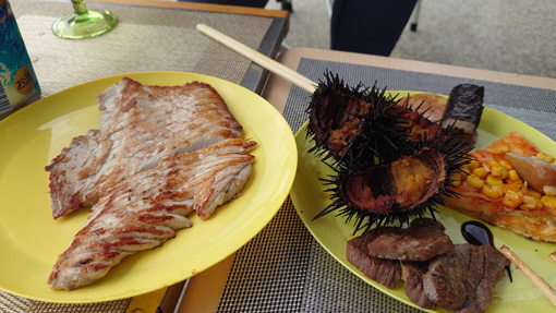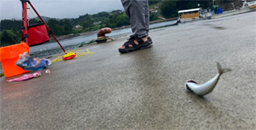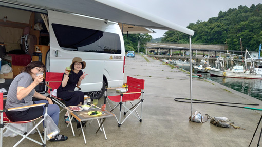 ![]() 港の様子 今年も来ました唐桑半島へ 2泊3日の予定で釣りとBBQと癒しの宿へ 初日は雨でしたが後半は絶好の行楽日和となりました ![]() 雨降る漁港 BBQ&海釣り 到着時は雨が降るも次第に小ぶりとなり 初日からアクセル全開のスタートとなりました ![]() 静かな浜 美味いお酒と! 自然が悪さしようが此処は楽園 海風を受ける肌は心地よく食する物は全て極旨なのです ![]() 隠れ港 宿のご主人 まして休日でも人影が少ない場所だ 小舟が行き交い漁師が下りてくれば気さくに挨拶を交わし! 地元訛りの言葉で談笑を楽しめます 予定の時間となり ご主人が宿まで車を移動してくれる為に迎えに来てくれました ![]() ウニの浜焼き 美味い 翌日は絶好のBBQ日和です 今日の一押しは宿の特別料理ウニの浜焼きだ 贅沢に焼ウニを口に入れると・・・ う~ う~まい 甘く 焼いた香りが 漂い 食感が 舌を走る 上ったばかりの動いてるウニを焼くと 違いを 之ほどまでに味わう事が出来ると感動でした ![]() マグロの刺身 ハラスと焼き物 贅沢はマダマダで~す 此処でしか之は出来ないでしょう? (笑) ![]() 釣れました 生きがいいね~ 釣果で~す (笑) Hiroちゃんの竿にアタリが来ました お~カサゴかな ヤッター と大喜びです ![]() 青空の下で! 素晴らしいBBQ日和 海原のさざ波は心を無にしてくれる優しさがある 何も考えないで眺める視線の先に! ![]() ウニの水揚げ 宿へ帰る 午後になると港が忙しくなってきました 何年も訪れて居ますがウニの水揚げに出会ったのは初めてです 船が帰港して水揚げが始まり 計りにかけて車に積み込む この一連の作業が またたく間に終わる光景は 海の男の根性を垣間見る出来事でした ![]() 大量旗 夕 食 朝 食 宿へ着けば海の幸がテーブルに並んでいます いつもいつも食べきれないくらいのご馳走がいっぱいだ この後も運ばれてくる料理に舌が駆け足で喜ぶのです 本当にいつもご馳走様です ![]() 宿の前(ご主人・お爺ちゃん・お婆ちゃん・Hiroちゃん・Gonちゃん ~ Sei) 3日目の朝 帰る前の様子です なごり惜しむように挨拶を交わし再会を約束しました 此処は唐桑半島 癒しの宿「なぎさ」さんです 年末もお邪魔させて頂きますので宜しくお願い致します ![]() 唐桑半島 唐桑商店 唐桑に来た時は必ず立ち寄ります唐桑商店さんだ 社長さんもスタッフの方々も愛のある接し方に感謝しています この度も美味しい海の幸お土産を頂きまして ありがとうございました 差し入れのマグロの刺身は極上でしたよ~ (笑) 動画をごらんくださいね! 戻る |
