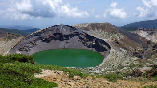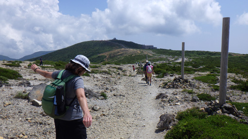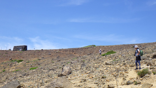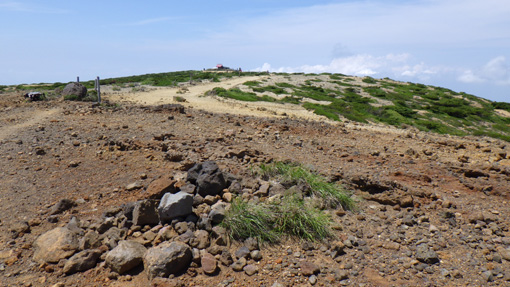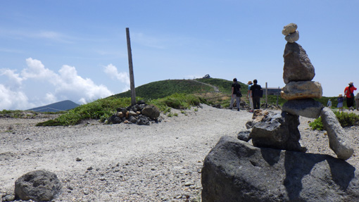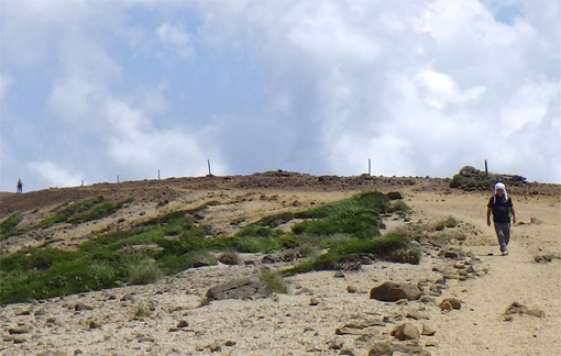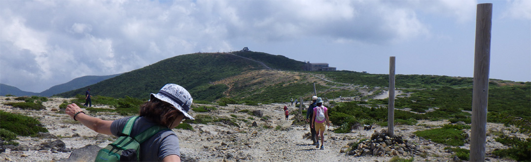 ![]() 登山道(馬の背)から見る刈田岳 下界の酷暑を避けて蔵王へ来ました 此処は無木立地帯の尾根歩きが出来る魅力あるコースです ![]() 駐車場は満車 山に咲く白い花 駐車場は満車状態でしたが運よく止める事が出来ました 早々に支度をして登山道を登ります ![]() 刈田岳より御釜 五色沼 刈田岳山頂は登山口より程なくして着きました 山頂からの展望を楽しみながら避難小屋まで足を延ばします ![]() 刈田岳山頂 登山道の不思議なケルン 山頂は凄い人の姿が行き交っていました 山頂神社でお参りを済ませ熊野岳へとコースを辿ります 登山道には力学を垣間見る小さなケルーンが在り! ん~ よく 倒れないな~ と感心です (笑) ![]() 五色沼の全景 コマクサ 今日の御釜の色は濃いグリーンだ 残雪のころとは違って見えるのは季節の影響何でしょうかね~? 熊野岳の斜面に来るとコマクサが群生しています 時期が外れているので咲いていないと思ったが健気に待っててくれた ![]() 熊野岳避難小屋 尾根歩き! 避難小屋を眺めながら緩斜面の登山道を登ります 尾根に出て小屋の脇を進めば山頂だ ![]() 尾根に咲くコマクサ 奥に地蔵岳 登山道の両脇にはコマクサが群生していました 北の方角には地蔵岳が見えます 蔵王ロープウェイから来た登山者なのか団体さんも多く見られます 言葉に耳を傾けるとどうやら外国の方らしい 家族連れや単独の方など此処は魅力の山なんですね~ ![]() 熊野岳 熊野神社 間もなく熊野岳山頂だ 山頂神社近くには多くの登山者が休んでいます ![]() 神社鳥居 山頂にて! 私たちも見晴らしのいい場所で休憩だ 尾根を歩く時も休憩時も気持ちのいいそよ風が体を冷やしてくれます 心地のいい山歩きに感謝して! 山頂の展望を眺めると穏やかな表情を感じる事が出来ました ![]() 下 山 奥に刈田岳 登山口をスタートしてから2時間30分で駐車場へ戻り 今日の山歩きが終わりました 蔵王は今時期に来ると自然のクーラーが体を冷やしてくれます ただ荒れ狂う山も体験してる私たちは感謝の一日でした 動画をごらんくださいね! 戻る |
