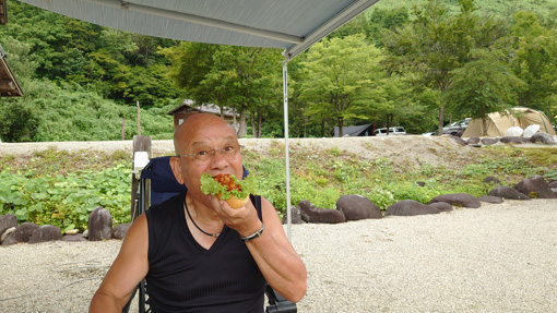 ![]() 白い森キャンプ場 今年も来ました白い森へ 私が大好きな所で深山のサイトは魅力がいっぱいだ ![]() 何時もの場所で準備 去年より静かかな? 毎年同じ場所でお世話になっています 今日は何時もの年より静かに感じるが気のせいなのでしょうか! ![]() 川で遊ぶ子供たち 喉の渇きを癒す 川では子供たちが水遊びする姿が在ります 川の流れも弱いので安心して遊んでいるようだ のどの渇きを癒してから徐々に料理の準備にかかります ![]() 道の駅で買ったトウモロコシ 我が家の野菜 道中で買ったトウモロコシを茹でます キャンプ飯に使う野菜たちは我が家の手作りだ ![]() ノンアルでカンパイ 即応品 酒が大好きな私ですが・・・ ドクターストップが掛かってる為に飲み物全てがノンアルです (笑) ![]() ホットドック 之は美味い 飲めないなら食べるしかないと 出来立てのホットドックをほうばります いや~ 美味いの なんのって ホンマに美味いと~ ![]() チリビーンズ チーズをのせた 次にできたのはチリビーンズだ チーズをのせて焼き上げると写真の様に成ります そのまま食べても美味い事には変わりがない 酒のアテには持って来いの一品だ ![]() パエリア 温泉へ パエリアが出来上がった 味見をしてから温泉へ行き後で頂くことにします ![]() 盛り蕎麦を食べる ブルーベリージャム 初日に食べたザル蕎麦と! ブルーベリージャムを載せた焼き肉を想いだした (笑) ![]() 陽が沈む! 静かな夜 夕陽が山の稜線を染める キャンプ場にも静かな夜が訪れます ![]() キャンドルライト 花火に歓声 今日はキャンドルライトで寛ぐことにしました 幻想的で情緒が在りますね~ ![]() 楽しい花火 サイトの流れで釣り上げる 夜中は花火を灯し童心に返りハシャギました 次の朝 サイトの中に在る川の流れに餌を流すと魚が釣れます 大きな川では全く釣れなかったが・・・(笑) ![]() 野菜が美味い ソロキャンパー 朝食は野菜がいっぱいで健康的な食事です 私たちの前のサイトでソロキャンを楽しんでいたのは 静岡から来た方だ チョットだけ談笑を交わしたが3泊四日で複数の県を回ってる様です 雨の心配もあるので早めに帰路につくとの事でした ![]() パエリア キャンプ飯 パエリアを作ります 作り立てを頂きましたが量が多いので食べきれない? と 言いながら 食べきってしまいました それから燻製が極旨(動画に写真有り)で 今回は二回作りましたマダマダ食べれそうでした ![]() ゲリラ豪雨 最終日の朝 昨晩はゲリラ豪雨で大変でしたが 朝は日差しも出て帰り支度には有りがたい天候です ![]() サイトの整備 味のある看板 次つぎと帰って行く人達を見送り 直ぐにサイトの玉砂利が敷かれてる所の整備に架かります スタッフの皆さんの手際の良い作業を拝見しました このようなご苦労があるから! 気持ちのいいキャンプが楽しめるのですね~ ![]() 管理棟へ 管理人と一緒の写真 早めに帰路の支度を済ませて管理棟へ寄りました 管理人の気さくな話と笑顔に感謝して また来ますので宜しくお願い致しますと挨拶を済ませ! キャンプ場を後にしました お世話になりました ありがとうございます 今回も二泊三日を楽しく過ごす事が出来ました 動画をごらんくださいね! 戻る |