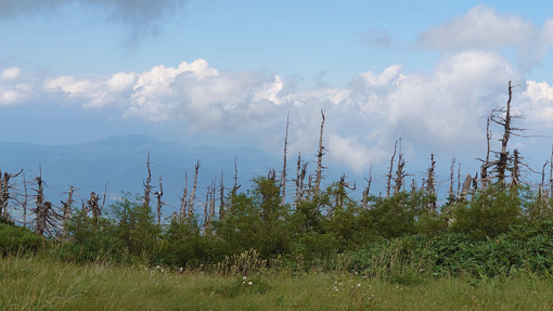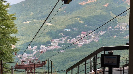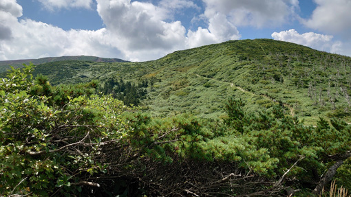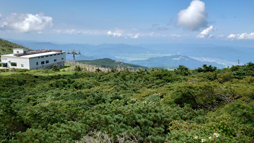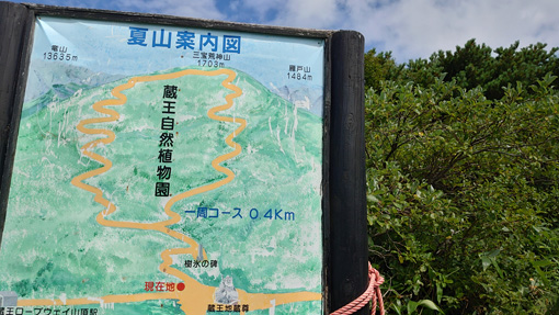 ![]() 三宝荒神山から見た地蔵岳 好天に誘われて蔵王へチョコット行ってきました 午後から天候が急降下の予報にのんびりも出来ない山旅です ![]() 山麓乗場 地蔵山頂駅 山麓駅からロープウェイに乗り樹氷高原駅へ そこからゴンドラに乗り変え地蔵山頂駅に行きました ![]() 山頂にある道標 登山道入口 下界は酷暑ですが山頂に来ると爽やかな風が吹いています 此処は何度も来ている所ですが三宝荒神山へは一度も行ってない所だ ![]() 地蔵尊看板 山頂の地蔵さん 地蔵さんへお参りを済ませて山頂へ行きます ![]() ハイキングコース アキノキリンソウ 蔵王自然植物園の案内板を見ると 一週が400mと記されています ![]() 白い花が咲いています コースの分岐 それではチョコット行ってくるかと! 山頂を目指すと直ぐに分岐の道標に着きました ![]() 登山道で振り返る リンドウ 足元の花々に語りかけて足を進めます ![]() キイチゴ 山頂駅 木苺が真っ赤に熟して美味そうだ (笑) 眼下には先ほど乗り継いできた地蔵山頂駅が見えた ![]() 花の競演 シャジン 夏と秋の花が揃って咲き乱れ綺麗です ![]() 山頂道標 山頂へ着きました 山頂へは直ぐ(時間は?)に着きました 道中であった人はいません! ![]() 奇麗な登山道 地蔵岳の登山者 登山道は整備されて歩きやすい 地蔵岳の山頂には登山者の姿が数人見えます ![]() リンドウ クジャクチョウ 山から下りて来ると綺麗な蝶々さんが迎えてくれた 見事な色彩の蝶々でもしかして初めての遭遇かな? ![]() ミドリヒョウモン 花とミツバチ 其処から少し下ると又もや蝶々と出会います 白い花にはミツバチが止まっていました ![]() トラノオウ? 開運の鐘 山頂駅まで戻ると観光客の姿が多く見られます 此処まで来るのは楽らくなので・・・ 高山の花を見れる素晴らしい山と思います ![]() 立枯れの木々 ロープウェイ 真冬に樹氷が出来る木々は枯れていました 冬の風物詩であるモンスターが大きくなれるのか心配ですね~ 動画をごらんくださいね! 戻る |