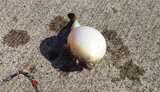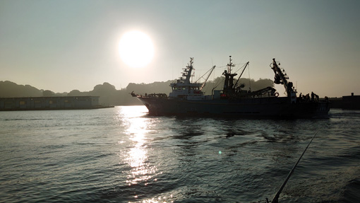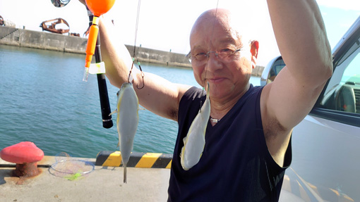 ![]() 大津港の岸壁 週末に大津港に来ました 酷暑の為か釣り人はまばらです ![]() 奇麗な雲が浮かぶ 空いていた港 灼熱の太陽の下で釣りを開始するがミャクはない! 数人いる太公望さんも釣れない様だ ![]() 暑くて飲むしかない! 竿が動かない! 釣れないし 暑いし 手持ちぶさなので飲むしかないでしょう (笑) ![]() 連れるのは❔ 大きくなったフグ 連れるのはフグだけだ 怒って膨らむ姿を見て写真に収めました ![]() 陽が落ちた港 やっぱりフグ 夜も更けて 之から釣れるだろうと竿を操り誘いをかけるが 連れるのはフグだけです (苦笑) ![]() 陽が昇る港 太陽が顔を出す 夜中が釣れなければ・・・ 朝方が勝負と 4時30分に起きて釣りを始めました 全く釣れません フグだけです 今日は坊主かと諦めかけた時に大型漁船が帰港いたしました ![]() 大型漁船帰港 並んではいる小型漁船 大きな機械を積んだ漁船です ちいさの船も二艘並んで入港しました ![]() 波が荒くなった 釣れる 大きな波が岸壁に打ち寄せ! 海原の波も荒く 浮きが大きく 浮き沈みを繰り返す 昨日から今まで全く釣れなかったのが嘘のように釣れだした 入れ食い状態が連続します ![]() 入れ食い状態 今朝の漁果 岸壁に居る釣り人も忙しく竿を上げる姿が在りました 漁船が入港と同時に2時間ぐらい曝釣れです こんなこともあるのですね~ 漁船が魚の群れも連れてきてくれたと嬉しい釣果でした しかし カメラを忘れたために全て携帯の画像です 魚と戯れる動画を撮る事が出来ませんでした (笑) ![]() 巨大なクラゲ 初めて捌いたタコ 海原には大きなクラゲがいっぱい居ました 同じ町から来たと言うタコ釣り名人さんと釣り談義もあり 話しの中で釣ったタコを頂きました 教えて頂いた通りにタコを捌いて頂くと! 美味い 売ってるたこより 美味い と チョー満足の食卓でした タコ釣り名人さん ありがとうございます 動画をごらんくださいね! 戻る |