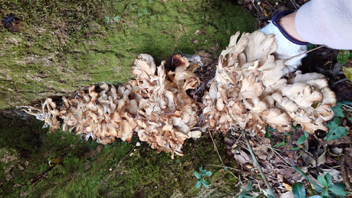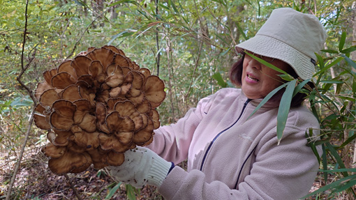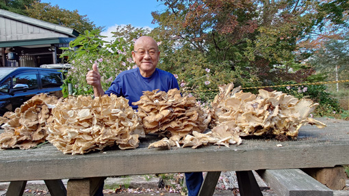 天候(晴れ) ![]() マイタケ山の様子 今年初めてマイタケ山の城へ行ってきました 最初は雑キノコばかりでしたが!藪を超えて登ってゆくとビックリ! ![]() 最初見つけたのは大きな塊が二個です ![]() どんどん奥に進むと二ケ所目のマイタケ発見でした ![]() その後も次々をマイタケが現れます ![]() 結果は6ケ所で見つけて背負籠がいっぱいになり 肩にづっしりと重みが加わります よろよろと山を下り午後には山小屋へ到着でした 今日の収穫は過去最高の出来でチョー満足のキノコ狩りでした 週末の山小屋でマイタケを皆さんと食べたいと思います 山小屋キノコオフ会楽しみましょうね~ (笑) 動画をご覧くださいね! 戻る |