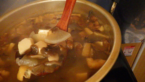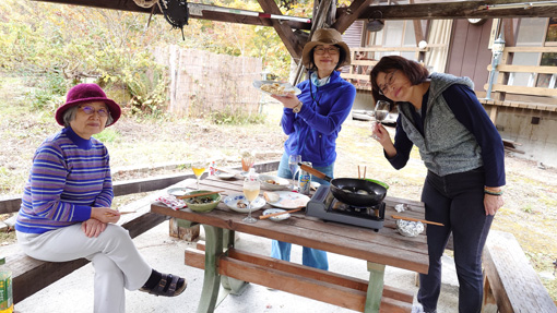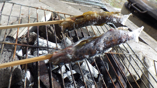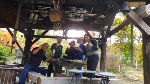 天候(晴れ) 山小屋の広場を埋めるキノコ ![]() 115号線より箕輪山&紅葉 週末を利用して山小屋でオフ会を楽しみました 遠くは青森と仙台から そして地元の三人を含めて5人が顔を会わせます ![]() 土曜の山小屋 焚火で暖をとる! 早い時間は曇っていて少し肌寒い日になりました 釜に火を入れて暖をとります ![]() 山小屋広場のキノコ キノコ狩りだ! 山小屋の至る所にキノコがワサワサ出ています 夢中になってキノコ狩りを楽しんでいる二人の姿を写真に収めました ![]() 古木に出てるキノコ 道を引くキノコで埋まっています 古木や切り株などにキノコが張り付いています 採ってもとっても取り切れないキノコに最後はもう良いかと完了でした (笑) ![]() 採ったキノコを選別 マイタケを手に! 採ったキノコを流しで洗い選別をしています マイタケは先週採ってきたものを保存していたもので之から料理だ ![]() チョット休憩 マイタケの天婦羅 日差しも出てきたので喉を潤すためにカンパ~イ テーブルには青森の御馳走(ツブ・三種のハム・干物)が並んでいます ![]() 出来上がり(笑) かぼちゃホイル焼き マイタケの天婦羅 コリャ~ 参ったヶ 美味いど~ (笑) 焚火に入れて焼いたカボチャはホクホクで甘~くカリカリの皮が別物の珍味でした ![]() またまた休憩(笑) マイタケご飯 乾杯は何度しても楽しく 早くも酔いが回り絶好調と笑いが止まらなくなります マイタケご飯も出来上がり 手に取り頂くと 味付けがバッチリで箸が止まりません! ![]() オリミキと大根おろし 天婦羅盛り合わせ 先ほど広場で採ったオリミキを茹でて大根おろしで頂きました 天婦羅の盛り合わせは(コンフリ・マイタケ・カボチャ)で! 大きな葉っぱのコンフリはモチモチとした触感で春先から秋まで食べれる野草です ![]() 今日のメンバが揃いました キノコ汁 午後4時ころに安達太良山登山から帰ってきたTakaさんが合流だ 之で今回のメンバーが揃ったのでカンパ~イいです 大きな鍋に作られたキノコ汁は具だくさんで良い仕事をしています 山のものは美味いですね~ ![]() イワナの塩焼き 山小屋の紅葉 保存しておいたイワナとヤマメを塩焼きにしました ヤマメは遠く青森から参加してくれたMさんに食べていただきます 美味~い と 頭からガブリと食べて 喜んでいただきました イワナは もちろん熱燗のイワナ酒だ (笑) そして夜食にTakaさんの作ってくれた喜多方ラーメンを頂きます 流石 確かな腕米のラーメンは本場の味でした 酒も進み気合が入り 小屋は割れんばかりの爆笑です 夜中に(まだ眠れんと)飲みなおす程に酔いしれたオフ会となりました ![]() 朝もやに浮かぶ紅葉 モミジが際立っています 翌朝は朝靄で一面がかすんでいます 霧の中の紅葉も奇麗だったので写真に収めることにしました ![]() 朝もやの山小屋 解散前の集合写真 霞が取れてきたのは11時ごろです 早朝のキノコ狩りを楽しみ朝食は昨日のあまりものでしたが! コクのある汁やマイタケご飯は何よりの御馳走でした ![]() 帰路の115号線 吾妻山を捉えた一枚 福島へ向かって走る車窓からは箕輪山や吾妻山の紅葉がきれいに見えます 今年のオフ会も笑いの中で完結ででした 皆さん また楽しみましょうね~ 動画をご覧くださいね! 戻る |