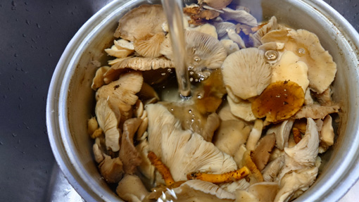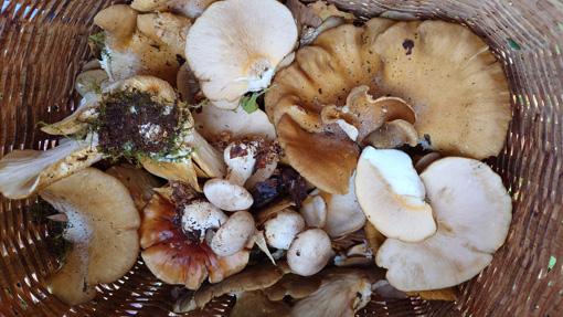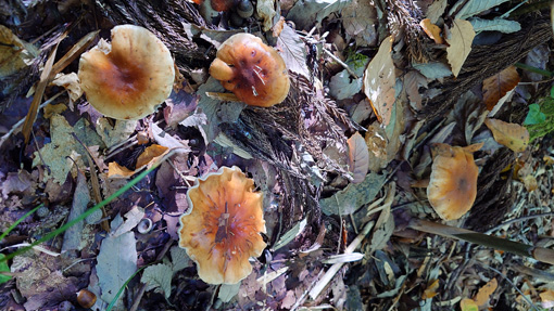 天候(晴れ) ![]() ムキタケが連なる山へ 寒い朝でしたがシメジを採るために山へ入りました しかし出てるのはムキタケが多く盛りです ![]() 紅葉が始まる 流れたマスタケ 低山なので紅葉は始まったばかりだ マスタケの塊は既に流れています ![]() ムキタケの子供 シメジは?? 藪を超えてゆくとムキタケの子供がいっぱい出ています 採りごろは一週間先でしょうね (笑) お目当てのシメジはさっぱり出ていません! 小さなものを3個だけ見つけることが出来ました ![]() チャナメツムタケ?? 食べます (笑) チャナメ??らしきものが出ています 前回のキノコ狩りでも採って食べたが 美味しかったので今回も収穫しました ![]() ムキタケがいっぱい 並んでた 今回はシメジ狩りがムキタケ狩りになってしまいましたが! こんだけ採れると嬉しいですね~ (笑) ![]() 今日の出来高 選別して水煮 持ち帰ったものは直ぐに選別して茹でます 下味をつけてからプラBOXに小分けしたものを食べて頂きました 私は採るのも好きですが食べるのも大好きです (笑) 動画をご覧くださいね! 戻る |
