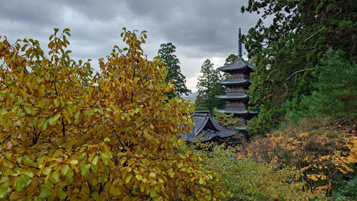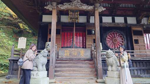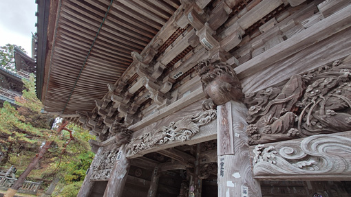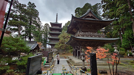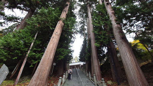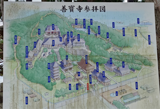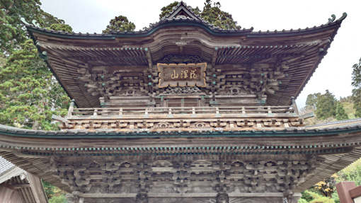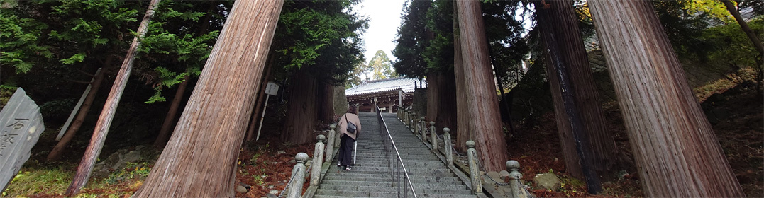 天候(曇り~雨) ![]() 善寶寺の石段 善寶寺を訪ねて寺の歴史や国の重要文化財に! 触れる貴重な時間を得ることが出来ました ![]() 五重塔 参拝図 平安時代中期の天台宗の僧 善寶寺開基龍華妙建上人は 出羽国(現 山形県)の庄内平野の南の山に 天歴五年(951)の秋 龍華寺という草庵を開き もっぱら「法華経」を読誦していたと伝えられる。 天歴九年(955)に五穀を断ちをして入定修行に入る 上記のように記されています ![]() 案内板 山 門(総門) 安政3年(1856年)に再建された十二支を主体とする細やかな総門 総ケヤキ造り この優れた彫刻は 棟梁の剣持藤吉30歳の気迫込められた作と記されています ![]() 境 内 繊細な彫刻 五重塔と総門が並び迫力ある建築物を観る事ができます 山門二階楼上内部には秘仏である十六羅漢像が安置されておりますが 一般への公開はしておりません 梁間に架かっている額縁には善寶寺の山号である「龍澤山」と架かれており これは江戸時代活躍した鶴岡出身の能筆の名僧「不幼老卵」が書いたものであります 遠くから見ると小さく 門に近づけば近づくほど 鳳凰が羽を広げるかのように壮麓に見えると言われます 上記のように記されていました ![]() 杉並木の石段 本堂(拝殿) 階段を登り詰めると本堂前に出ます 雨の降る中でありますが多くの参拝者が訪れています ![]() 龍王殿 拝 殿 開山の太年清椿大和尚が室町時代後期文安3年(1443年)に 守護神の龍神様を祀るために創立したと言われれ 天保4年(1833年)に再建された権現造りの壮厳な伽藍です ![]() 古木に神を感じる 境内から五重塔 境内に神々しい古木がありました 黒光りしたゴツゴツした幹には凹みがあり御神木かなと合掌です ![]() 参 道 帰路の山形道 参拝を終えた私たちは鶴岡市内で買い物をして帰路へと車を走らせました 道中の車窓からは雪景色とみぞれの様な雨の様子が見られます 車内では二日間の旅談義を楽しみながら! 次の行く先に話が飛んでいました 楽しい旅はこれからも続きます (笑) 動画をご覧くださいね! 戻る |