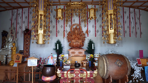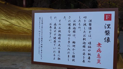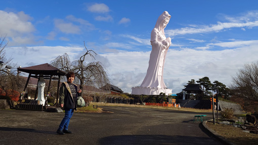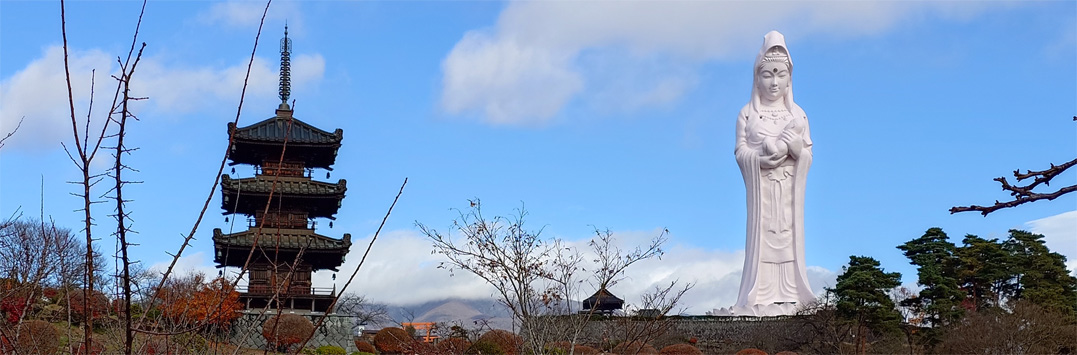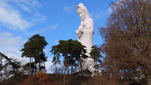 令和6年12月4日天候(曇り~晴れ) 会津村 ![]() 三重塔と慈母観音 白い巨大な仏像に会うために会津に来ました 見上げる慈母観音は優しい温もりを感じます 到着時は雨でしたが参道を進むとご覧のように好転しました 「世界平和を祈念するために建立された会津慈母観音像と四季折々の姿を見せる 6万坪の大庭園はパワースポットとして注目されています 人々の信仰の対象であった神の峰・磐梯山 その麓の四神相応の地に会津盆地を見渡すようにして会津村は拓かれました」 上記『』内は会津村のHPより抜粋いたしました ![]() 大手門 稲荷神社 大手門にて拝観料を収めて参道を進みます 最初に伏見稲荷神社へ参拝でした ![]() 境内に鎮座する慈母観音 観音様に祀られてる観音 見上げる白い巨大な観音様は慈母観音です 観音様の胎内には多くの仏像や観音様が祀られていました ![]() 高台より大庭園 涅槃像と三重塔 慈母観音の胎内には螺旋状の階段があり 最上階は40mで四方が展望用の小窓があるために! 素晴らしい景色を見ることができました ![]() 滝修行所 観音滝 参道の坂道を下ると滝行の修行所があります 勢いのいい水量で流れ落ちる観音滝が滝行の場所と分かりました ![]() 本 堂 本堂の仏像 巡るように参道を進むと本堂につきます 本殿いて般若心経を唱えて心穏やかな気持ちになり感謝 (合掌) ![]() 慈母観音像計測 青空に聳える観音様 参道を歩いていると常に慈母観音様に見守られている様でした ![]() 涅槃像案内 涅槃像 高台から見えた涅槃像につきました 金箔の姿は神々しく圧巻です ![]() 参道をめぐる 庭園と三重塔 参道を歩き一周すると大手門の前に戻ることができました 着いたときは雨が降っていましたが見る見る空から雲が消えて行きます 青空に浮かぶ観音様に見守られてお参りを済ませました 素晴らしい会津村に感謝 合掌 動画をご覧くださいね! 戻る |
