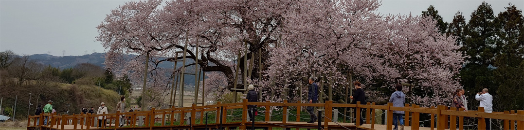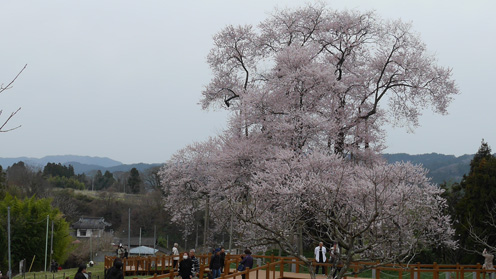 ![]() 老木の桜 矢祭町に在ります戸津辺のサクラを見に行ってきました 地元(郡山)の桜は まだ蕾で咲くのは来週あたりでしょうか? 今日 思い立ったように来たのは・・・ 戸津辺のサクラが報道で8分咲きになったと聞いたからです ![]() 曇り空に際立つ! 戸津辺のサクラ 生憎の曇り空で花の色が表現できません! しかし見ていると薄いピンクの花が瞼に触れ なにか語りかけたいのか囁くような声が耳元を通り過ぎた ![]() 無数の支柱 迫力の幹 太い幹から八方に枝が延びています 無数の支柱が踏ん張り枝をささえる姿が誇らしげに見えた ![]() 養生の跡? 幹から延びる枝 老木の肌は荒れて養生されている箇所があります 毎年力を振り絞り綺麗な花を咲かせているのでしょうね~ ![]() 老木の力 天にも届く美景 戸津辺の桜を見ようと多くの花見客が波のように打ち寄せる姿を見て! 青空の下で見たらどんな景色なのだろうかと・・・ 想像しながら帰路につきました ![]() 帰路の国道沿いに咲いていました枝垂桜が! あまりにも綺麗だったので車を止めて写真に収めました 動画をごらんくださいね! 戻る |