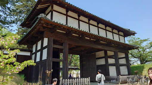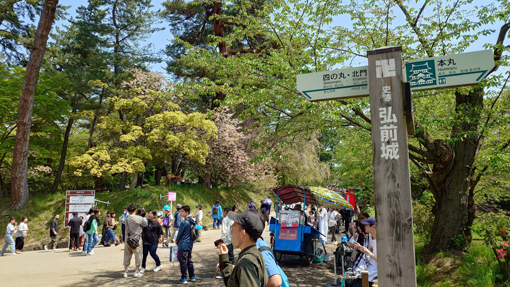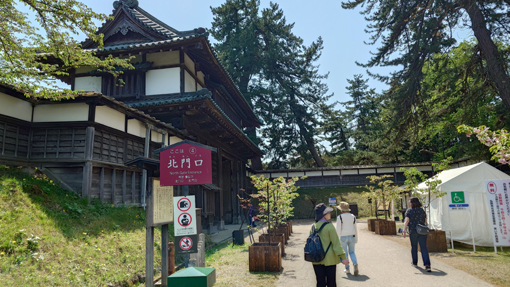 ![]() 弘前城から岩木山 弘前城の脇を通過した事は数十回あるのですが! 来たのは初めてです さくら祭りが開催されていて駐車場に入るにも一苦労でした ![]() 北門口 賑わう出店 城の北門から入ると直ぐに賑やかな出店の通りに出ます ![]() 大鳥居 早々に(笑) お店の通りは交差する人で凄い事になっています 店の中を覗くとテーブルが空いていたので早くも休憩でした ![]() 暑い時には! 並ぶ出店 外を歩けば暑くて我慢できないとソフトクリームを食べました それから名物らしい黒いコンニャクを頂きます 何を食べても美味~い (笑) ![]() 城内に在る道標 満開の桜 城内には道標が至る所にあるので迷うことはない 桜舞い散る風情ある所でカメラチャンス ![]() 見ごろの八重桜 石垣修復工事 奇麗な八重桜が今が盛りとそよ風に揺れています 城の石垣の修理が進められていて工事の様子も見ることが出来ました ![]() 岩木山と弘前城 三人娘で~す 展望台の在る広場に行くと眼下の様子や岩木山が一望できます 白い岩木山 いいですね~ (笑) ![]() 展望台より白い尖がり 山を背景に! ![]() 暑いで~す 北 門 城の散策は2時間くらい歩き北門に戻ります 初めての弘前城で歴史を垣間見る事が出来感動でした ![]() 城のお掘り お掘り越しの山 素晴らしい風景が広がるお掘りを歩き車を止めた場所へ 2024年 GWは 良い過ごし方が出来ました 皆さんありがとうございました 感謝 感謝 感謝 動画をごらんくださいね! 戻る |