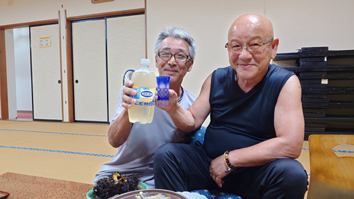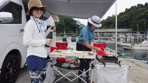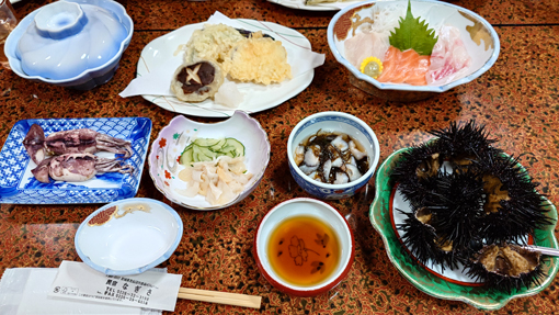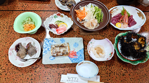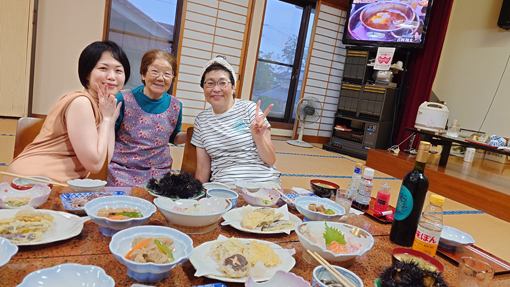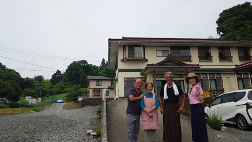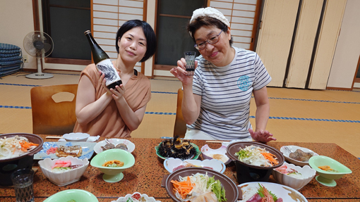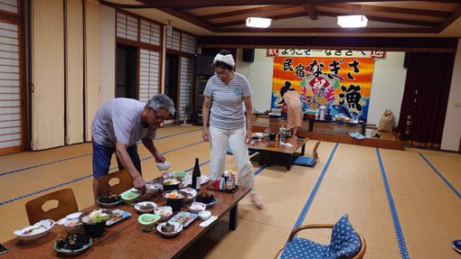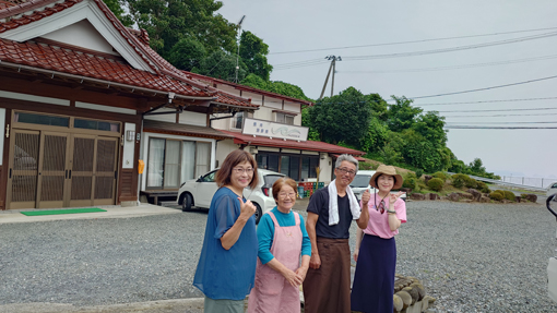 ![]() 石浜港の夕暮れ 連休を利用して唐桑半島へ 東北道~南三陸道とも車が多く混んでいました ![]() 漁師宿「なぎさ」 海岸線の宿 郡山を八時に出て着いたのが午後の一時を回っていました 早々に宿へ行き ご挨拶です 女将さん 暫くぶりで~す 玄関に居ました女将さんは! 満面の笑顔で こんにちはと出迎えてくれました ![]() 午後に着きました 早々浜へ 女将さんが毎年訪れる私たちを待っててくれたのです 常連は良いですね~ 気心が知り安心できるのが民宿の良い所ですよね! ![]() まずはカンパイ まったり休憩 早々に浜に出た私たちは 準備もそこそこにコップを手に取り飲みます 海原を眺めて微睡む姿も(笑) ![]() お休みかな? 手軽な食料 まずは直ぐに食べれるものを並べます これは途中のスーパーで買ってきた食料です ![]() 酒盗&チーズ え~ コーヒー チーズに酒盗を載せて食べると激ウマの逸品が出来ました あれ~ コーヒーカップで何飲んでるの? あ! そうか 之は二日目のコーヒータイムの写真でした(笑) ![]() 日本酒の出番 BBQ 肉を焼いています 鶏と豚肉を焼いてブルーベリージャムを付けて食べると たまらん美味さになりますよ~ 試してガッテン (笑) ![]() 宿の主人 焼ウニ 私たちがBBQを楽しんでいる所に宿の主人が船で来ました なんと ウニを持ってきてくれたのです 焼いて食べると美味しいと教えられ焼きます 贅沢 もったいない 等と言いながら焼き上がりを食べました 香ばしい焼ウニ 本当に美味かったですよ~ ありがとうございます ![]() 日が暮れて 宿へ入ります 日が暮れて 宿へ帰りました 大きな部屋で之から楽しい宴会が始まり飲むのです ![]() 広い部屋で飲みます 海の幸が並ぶ 女将さんが準備してくれた料理が並んでいます ゆっくりしてね~ と 言われ 楽しい時間が流れるのでした ![]() ウニ 盛り 宿のご主人と! 夏はウニが一番の楽しみです 他にも漁師が海で捕まえてきたご馳走がいっぱいだ ![]() 日本酒が合うかな 料理が並ぶ テーブルに並んだご馳走を食べながら談笑が続きます 民宿は宿の女将さんやオーナーと仲良くなれるのが一番うれしい! ![]() ナマコ&ウニ 女将さんと写真を撮る 何時来ても常に会っている様な気持ちになれる「なぎさ」さん 女将さんの優しい笑顔は何よりもご馳走です 之からも元気で何時までも待っててくださいね~ 民宿が大好きで~す ![]() 生きてるイカ イカ刺しで~す ご主人が私たちにイカを食べさせたいと海に出て行きましたが! 釣れないと帰ってきました 丁度その時に株式会社「ヤマカ」の社長と専務さんが 釣りから帰って来て・・・その話を聞き・・・宿の主人に 剣先イカを分けてくれたのです ボールに入ったイカはピュッピュッと水を出し動いています 主人が手早く捌いてイカ刺しの出来上がりだ 透き通った色とコリコリとした食感に甘い味が舌を虜にし 吸い込まれるように食べました 社長さん 専務さん 本当にありがとうございます ご馳走様でした ![]() 宿の主人 帰りの写真 二日間お世話になり帰る時が来ました 楽しい時間は直ぐに去ってしまいます 私は ゆっくりと流れる時間と人情とやすらぎが好きだ ホテル等では出来ない ふれ合いが生まれる宿が民宿と思います 山や 海や 神社仏閣巡りの先々に行きつけの民宿があります 宿の皆さんは本当に良い人ばかりで大好きです 民宿 良いですね~ (笑) ![]() 後方は民食の建物 別れを惜しむ 名残を惜しみ宿を後にしました 暮れにまた来ますので宜しくお願い致しま~す 動画をごらんくださいね! 戻る |