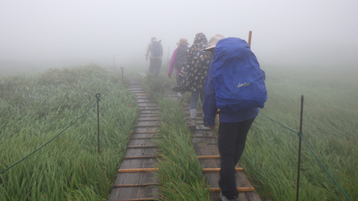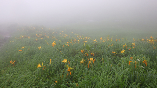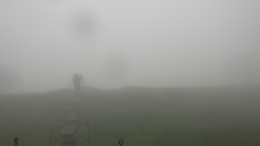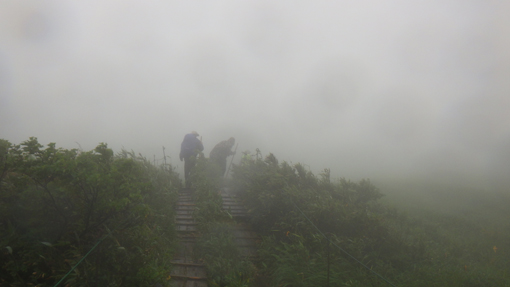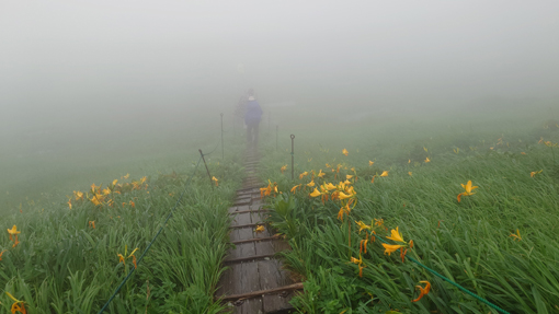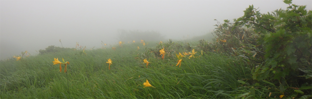 ![]() 阿弥陀ヶ原のニッコウキスゲ 宿を出るときは雨は降っていなかった しかし8合目への道へ入ると雨が降り出しガスが掛かり視界が悪くなります ![]() 8合目駐車場 登山口 八合目駐車場に着くと視界は10mくらいしかなく! 車を止めるにも区切り線が見えないくらいでした 横殴りの風と舞い上がる雨の粒を体に受けてスタートです 身体が風に揺られて歩きにくい ![]() 暴風雨の中を出発 阿弥陀ヶ原の池塘 木道は雨に濡れているために滑り危険な状態だ 風に靡く草や池塘を眺めて気を紛らわします ![]() 御田原参篭所 御田原神社 中の宮で休憩とり御朱印と金剛杖に焼印をお願い致します 御田原神社にお参りをして参篭所へ入りました ![]() 此処からは阿弥陀ヶ原に咲いてる高山の花です ![]() ![]() ![]() ![]() ![]() 御田原参篭所(休憩) コーヒータイム 中は天国別世界だ 数十人の参拝者が休んでいます 朝の6時から居ると言う岩手から来た年配者の方と談笑でした 75歳を過ぎると月山山頂神社に着いてから 住所と名前を書くと登拝の番付表が送られてくると!笑顔で話されていました 私たちは美味しいコーヒーを頂いてから再び歩き出します ![]() 休憩後スタート 月山への鳥居 外へ出ると暴風雨が荒れ狂っています これでは山頂までは行けないだろうと・・・ 阿弥陀ヶ原を探索して撤退することになりました ![]() 暴風雨 ホワイトアウト 横殴りの風は強くなるばかりで視界は殆どありません! 雨具を羽織っているが役に立たない位だ 靴の中まで雨でグッショリで・・・体にまとわりつくのは! 汗か雨か分からないがビショビショです 帰り道に温泉を見つけて気持ちも体もサッパリしてから 道中に在ったラーメン屋さんで腹ごしらいでした (笑) ![]() 宿坊「三光院」 山へ行く前 今回のお泊りは宿坊「三光院」さんです 初めての利用でしたが気持ちのいい神主様と奥様のお持て成しが素敵な宿でした ![]() 三光院「神主」様 精進料理 早朝に護摩を焚いて頂きご利益を授かりました 精進料理も美味しく朝ごはんも心のこもった料理です また機会がありましたら寄らさせて頂きたいと思います ありがとうございました 感謝 動画をごらんくださいね! 戻る |
